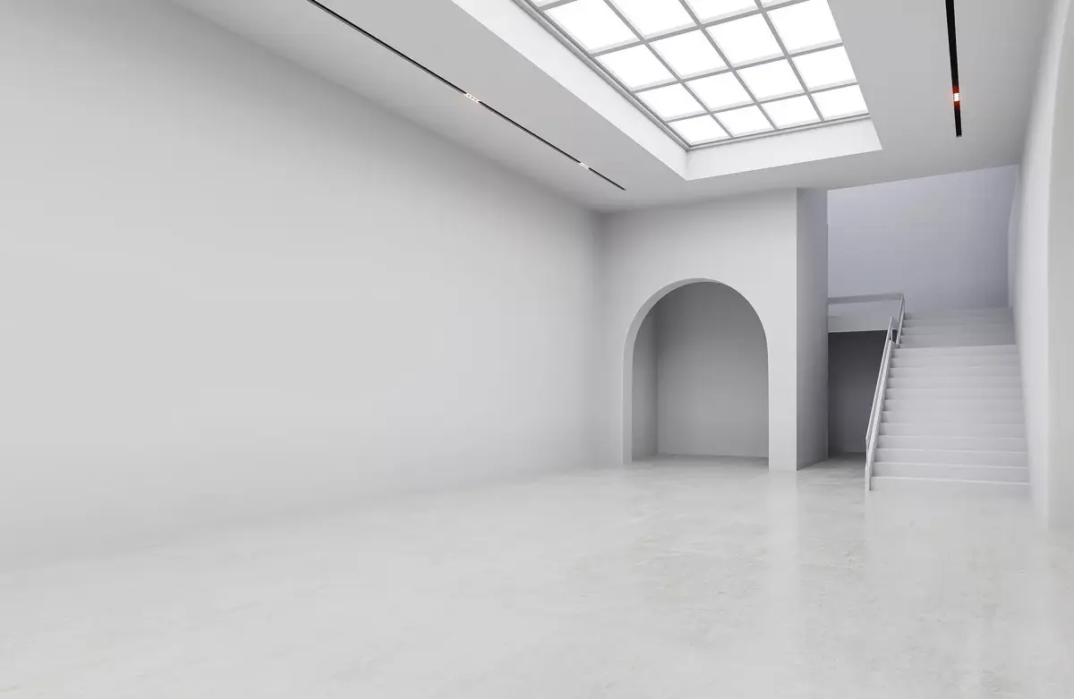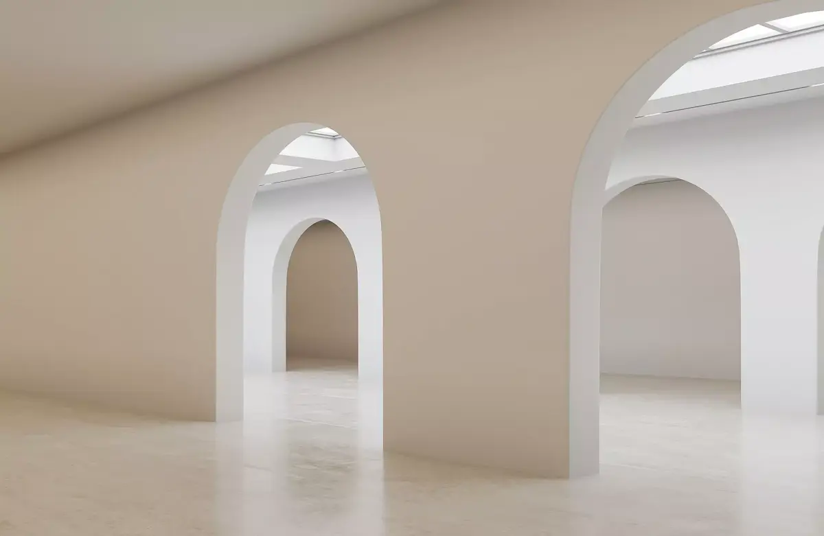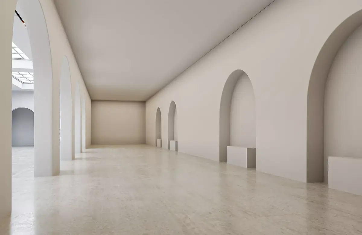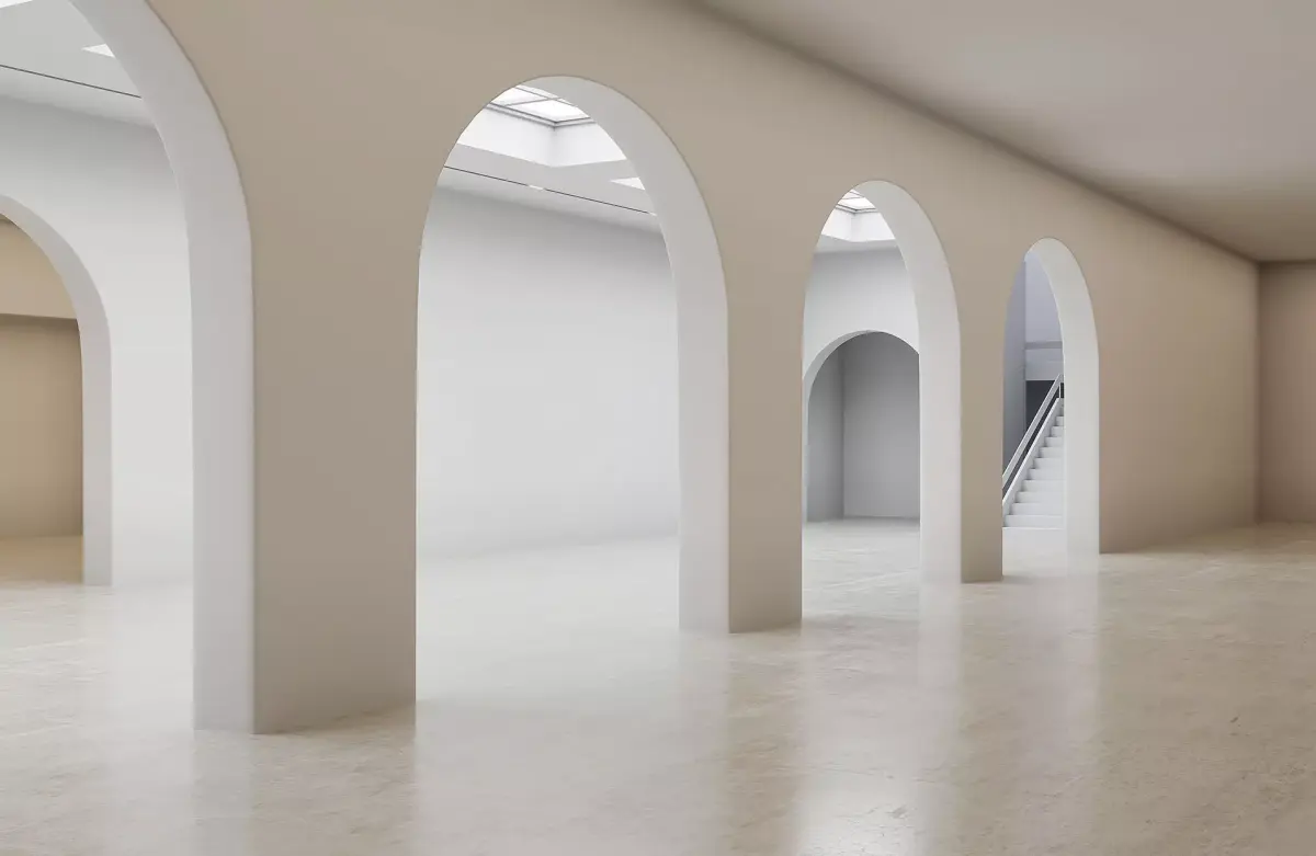 This clean, minimal 3D interior is designed with elegant curved entrances, creating a versatile environment that adapts to a wide range of creative needs. Its neutral white design makes it the perfect blank canvas for: