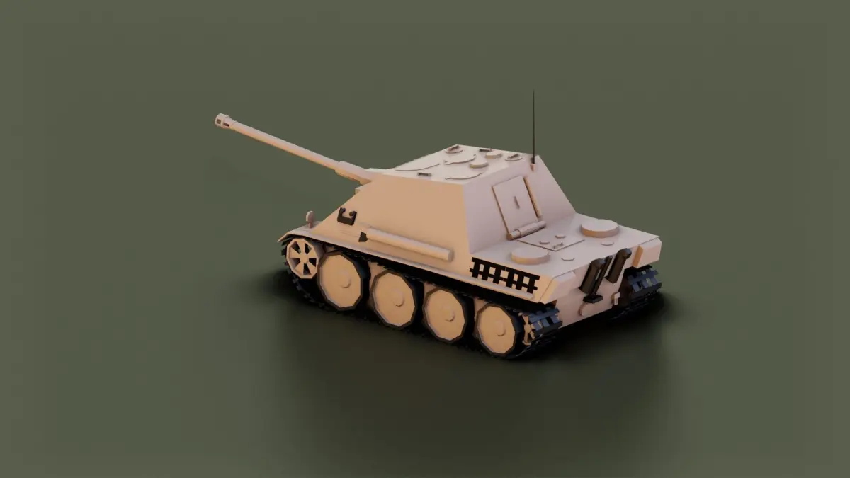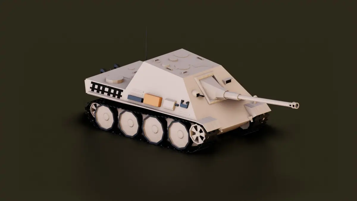 A German World War 2 tank modelled in a low poly form. This tank was produced in 1943 and its main purpose was to destroy enemy tanks with its 88mm gun.
