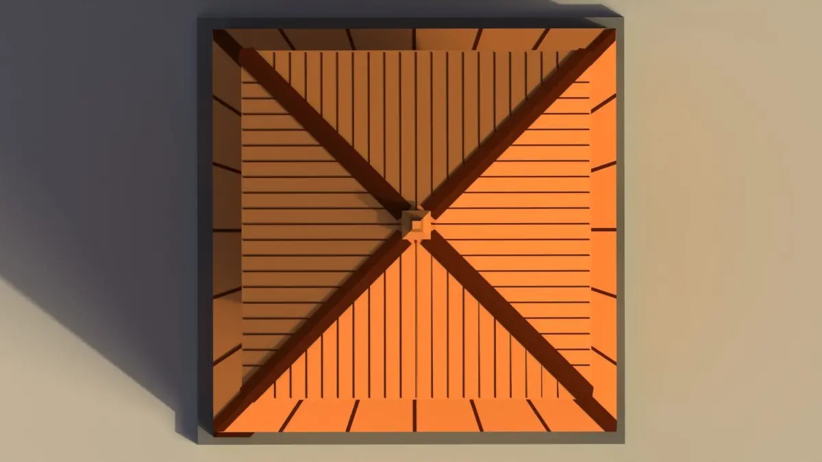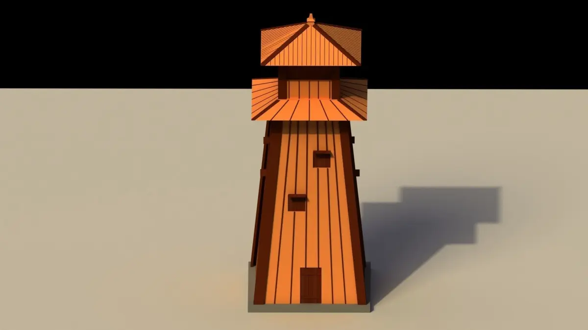 A traditional low poly Japanese tall, wooden tower model.