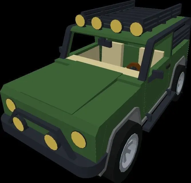 A detailed low poly model of a Jeep firstly thought to be used in a safari scenario but of course able to be put in other environments, this model is custom made taking inspiration from the jurassic park jeep, the jeep wrangler body and also from safari jeeps.