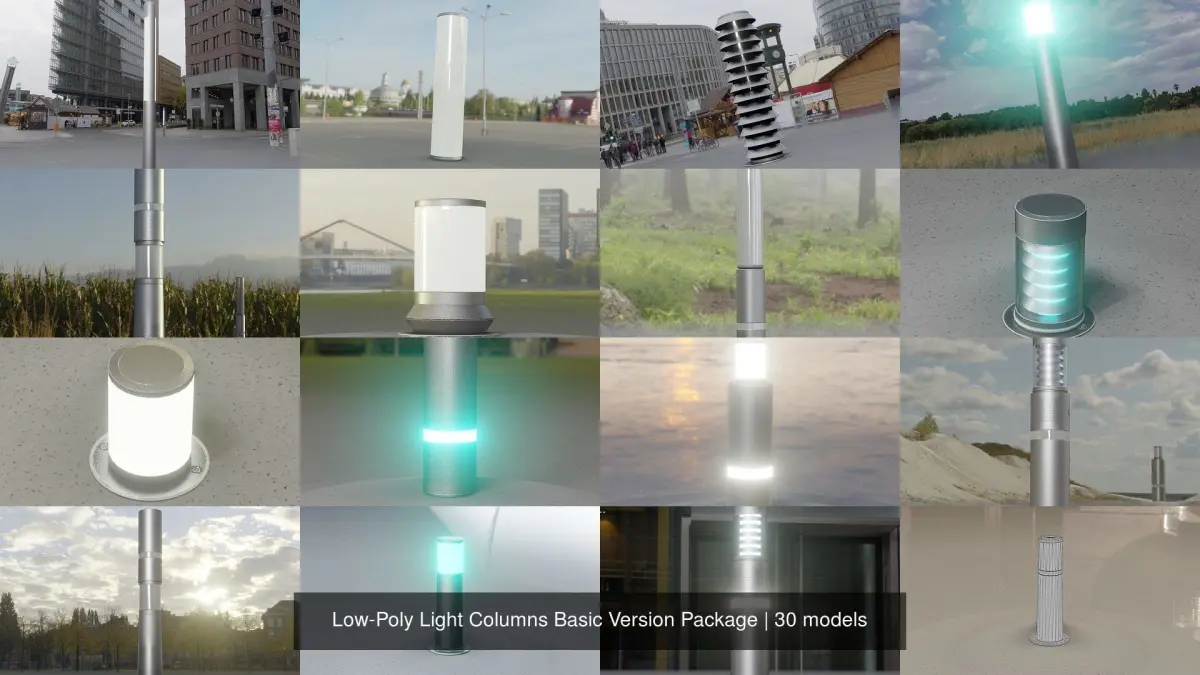 Here are 30 different types of low-poly light columns. The basic version!