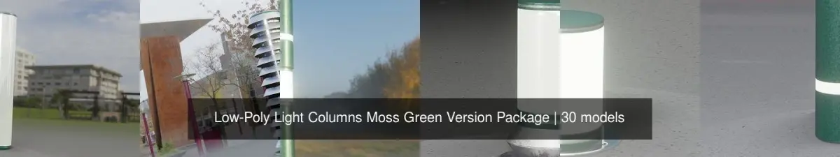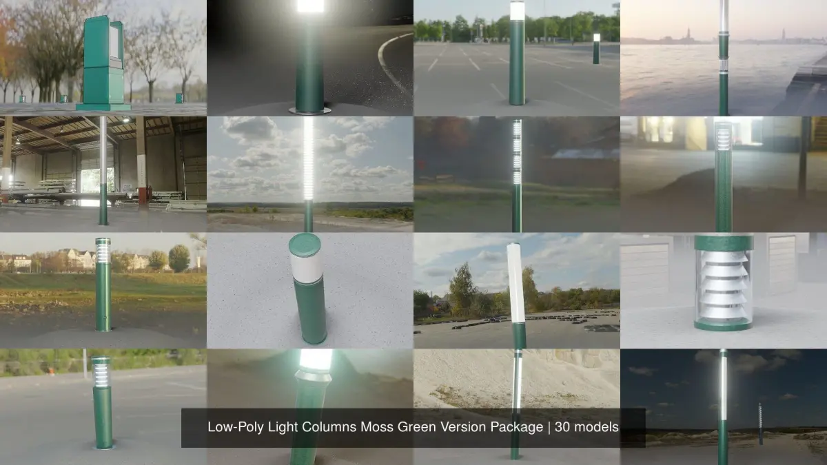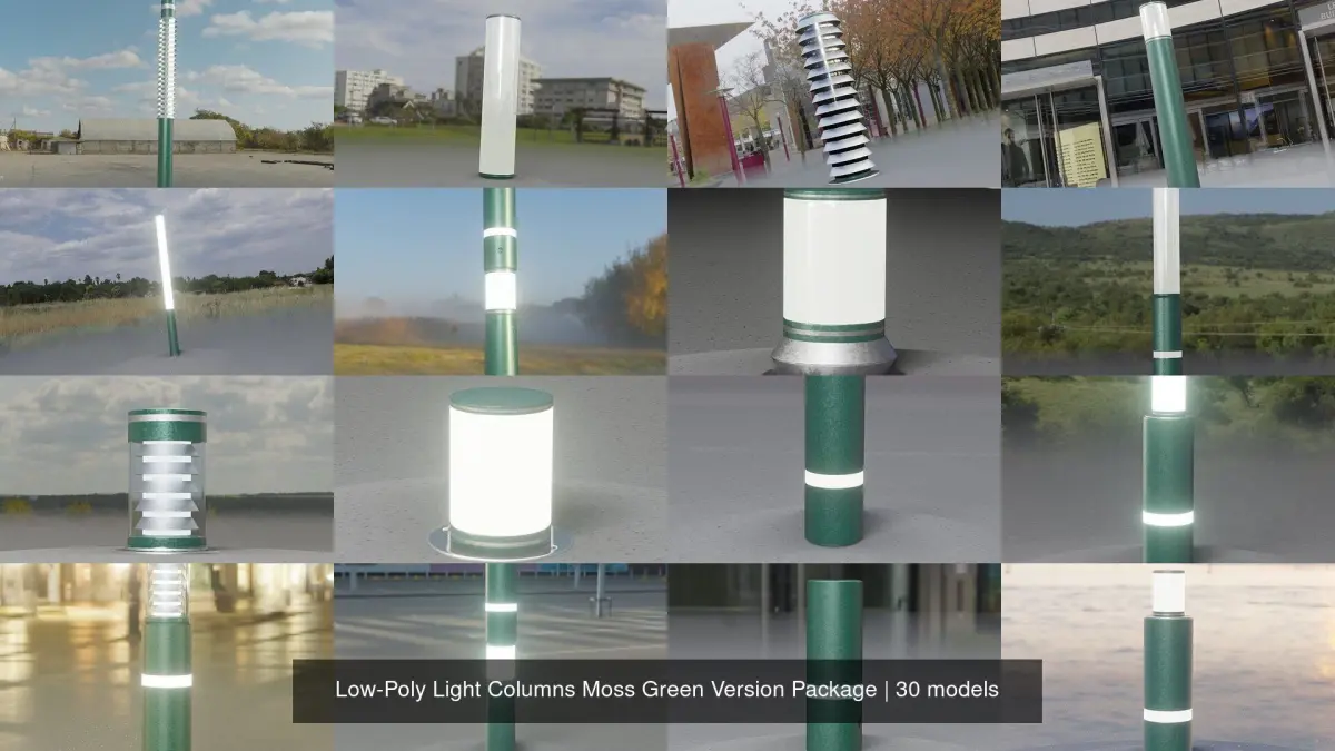 Here are 30 different types of low-poly light columns. The moss green version!