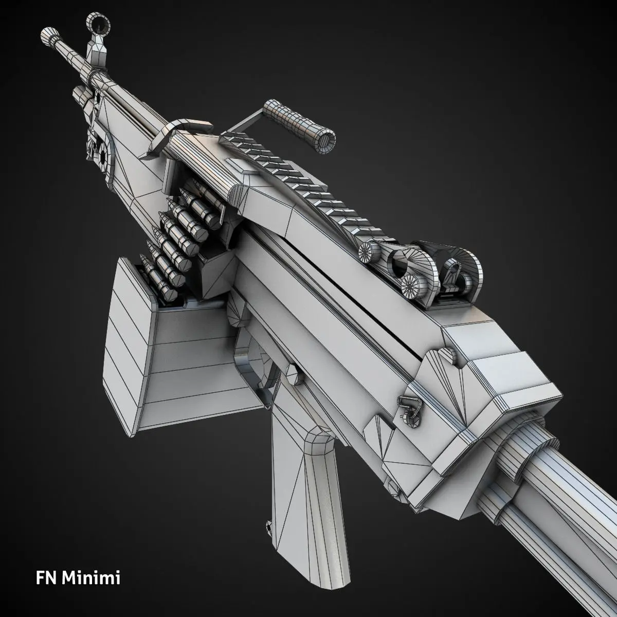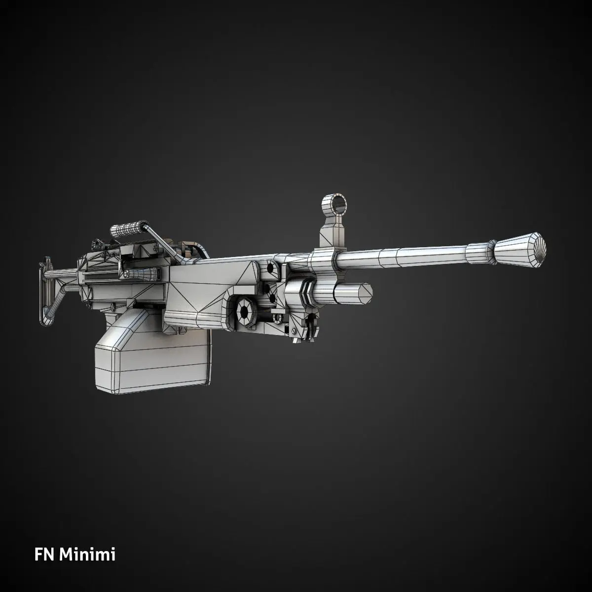 Included weapons: FN Minimi (13,788 triangles) MG4 (11,312 triangles) M60 (12,615 triangles) M249 (13,510 triangles) PK Machine gun (13,709 triangles) SA80 (10,045 triangles)