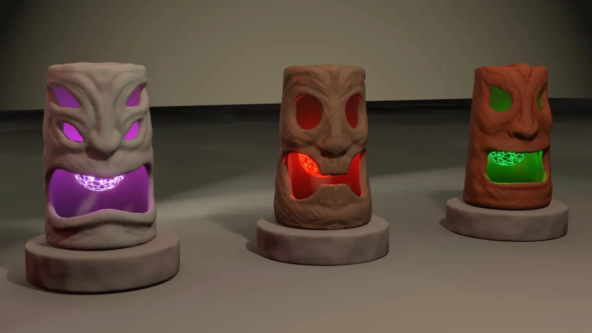Set of 3 stylized magic lanterns. Suitable for decorating your 3d scene or game. The red light lamp has 8854 polygons, the green light lamp has 9274 polygons, the violet lamp has 8604 polygons, all the spheres have 512 polygons and all the stands have 1408 polygons. The light inside the model comes from a point light source. All spheres are animated and attached to the model (the light source too).
