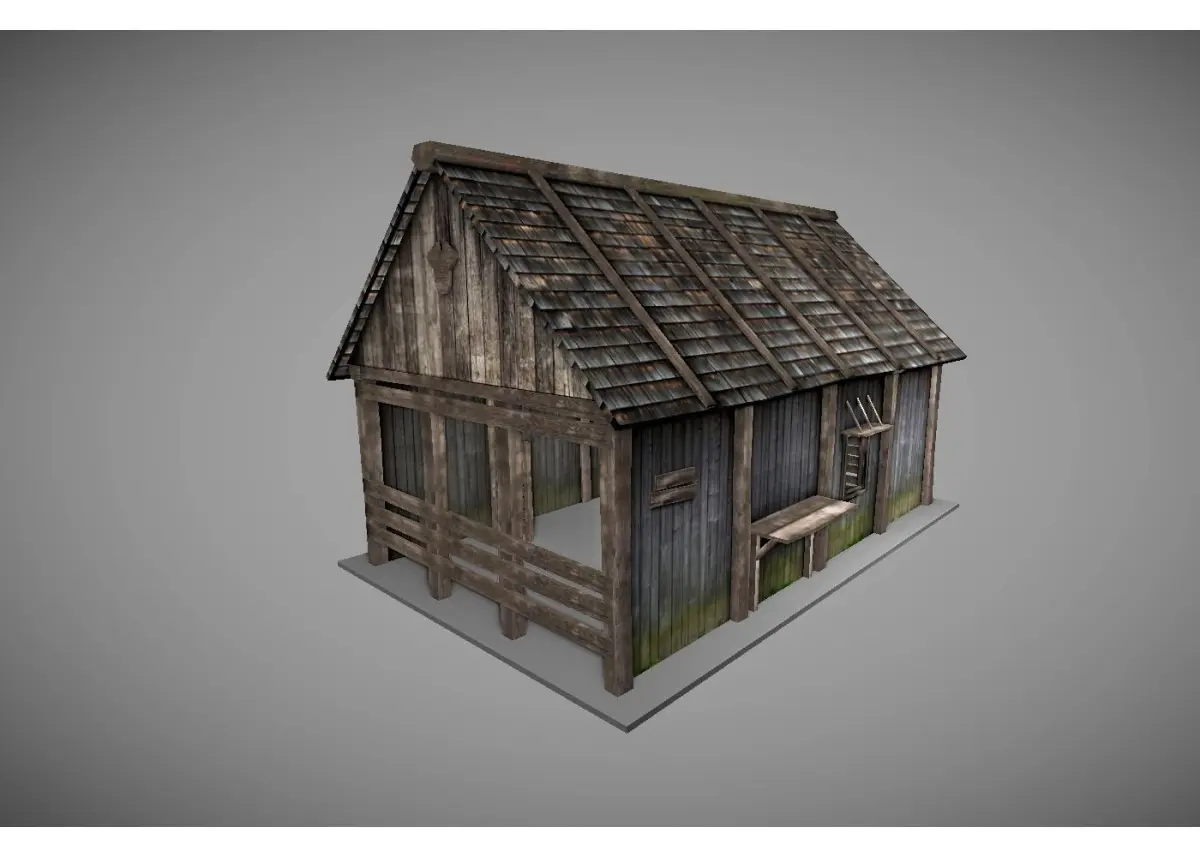 low poly model of medieval house- fully textured and UV mapped