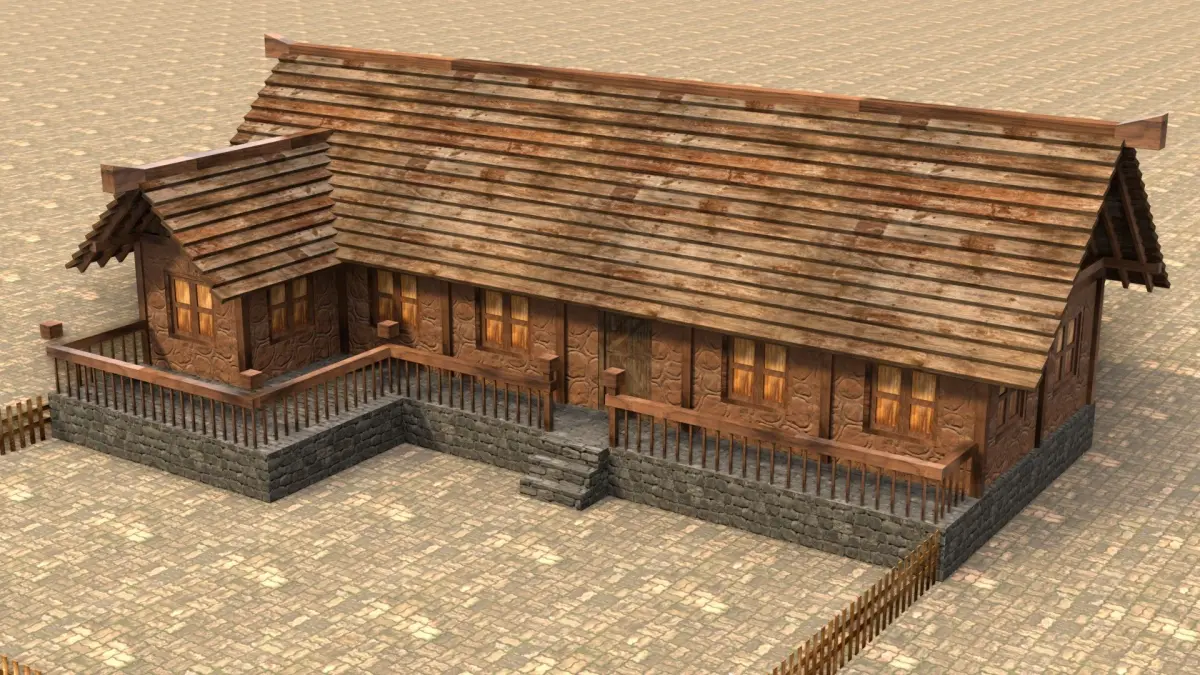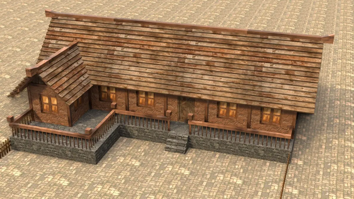 - Populate medieval or fantasy settings with a functional wooden structure.