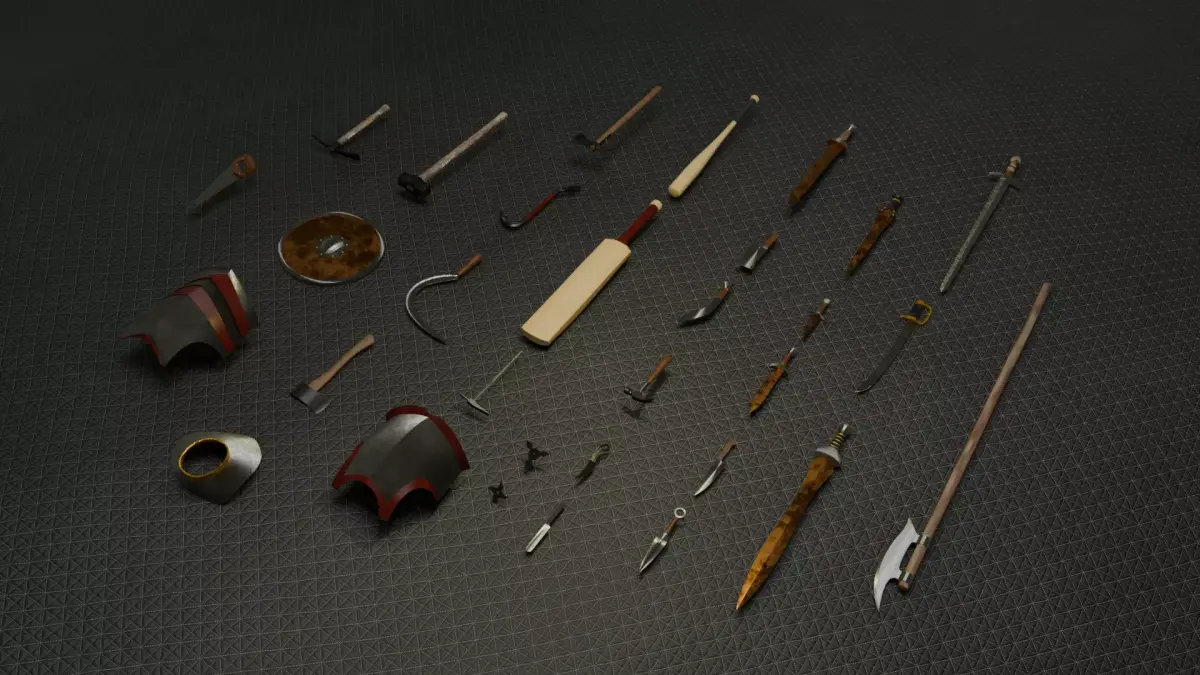 This Low Poly Melee Weapon Pack includes a diverse selection of melee weapons, shields, and armor pieces — perfect for games, animations, and VR/AR projects.The models feature clean and highly optimized topology, making them ideal for real-time rendering and game engines like Unity and Unreal Engine.From swords, axes, and spears to unconventional melee items like cricket bats and farming tools, this pack gives you a unique variety for different settings — medieval, modern, or fantasy.All models are lightweight, game-ready, and easy to customize.
