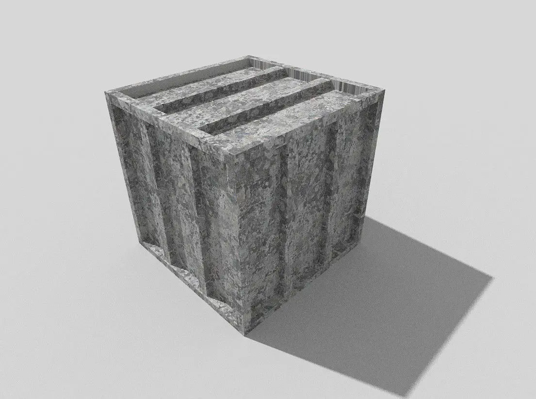 low poly 3d model of metal crate, fully textured and unwrapped.