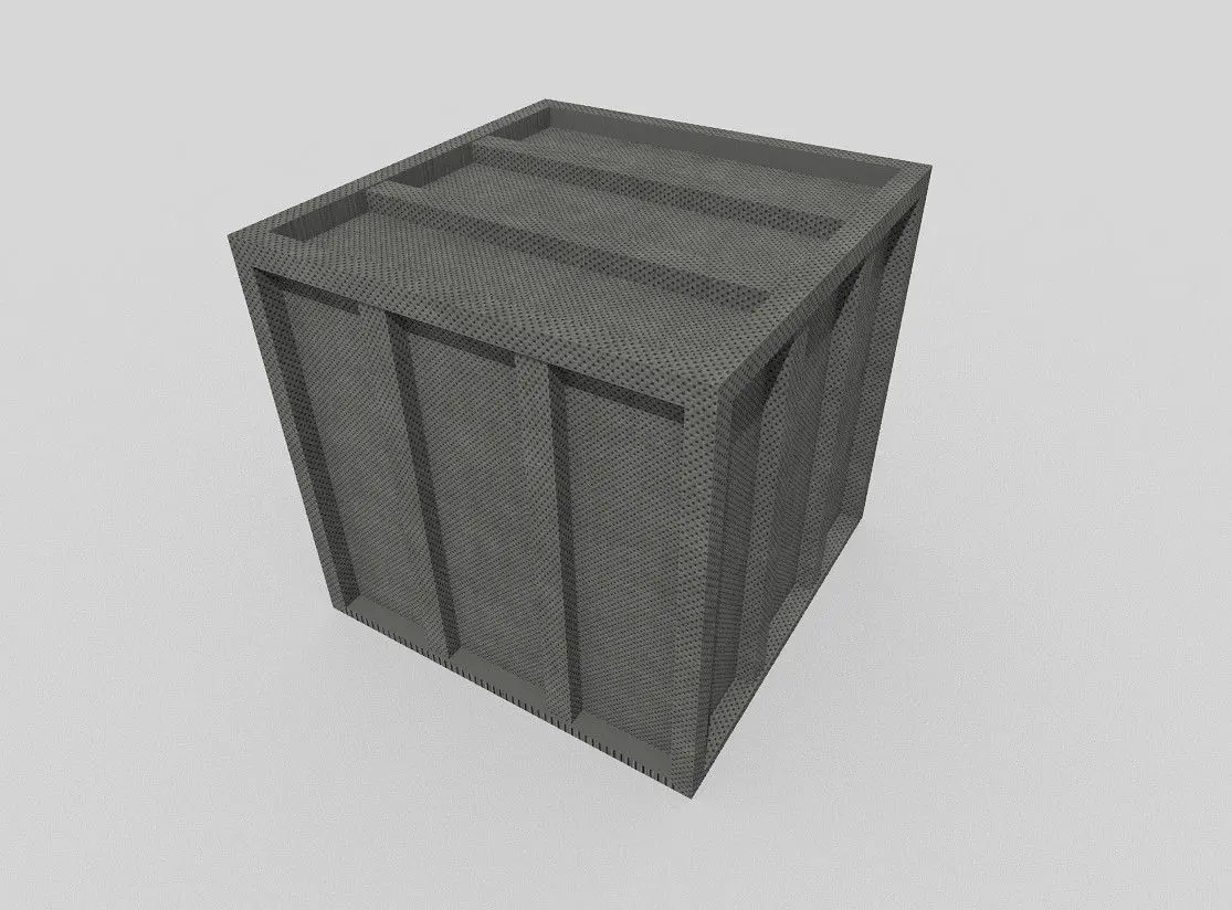 low poly 3d model of metal crate, fully textured and unwrapped.