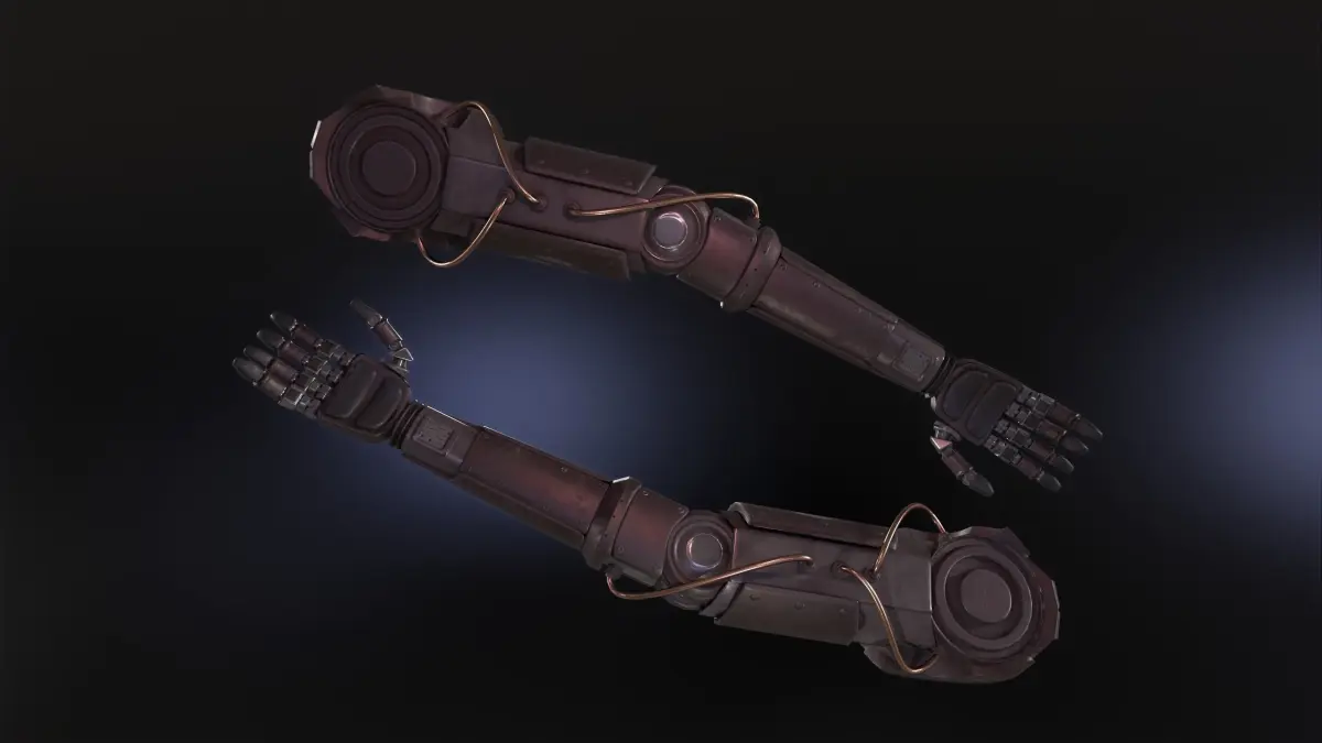 Gamerady 3D model of robot arm. Ready for game, wireframe optimized. PBR includes. PBR metallic-roughness.