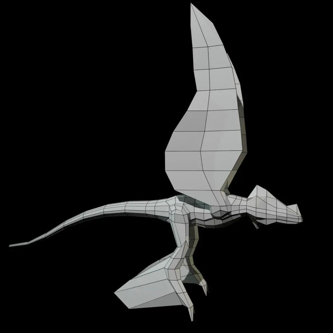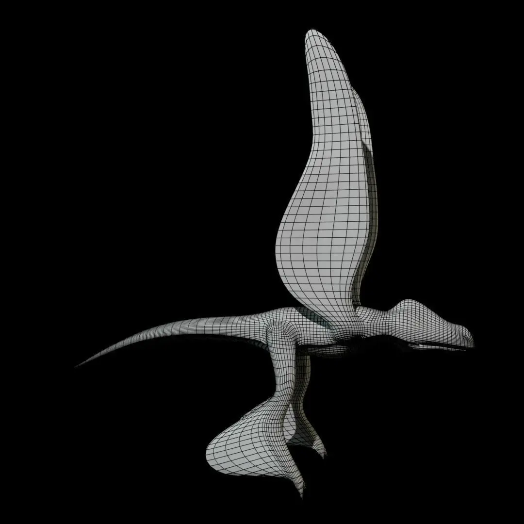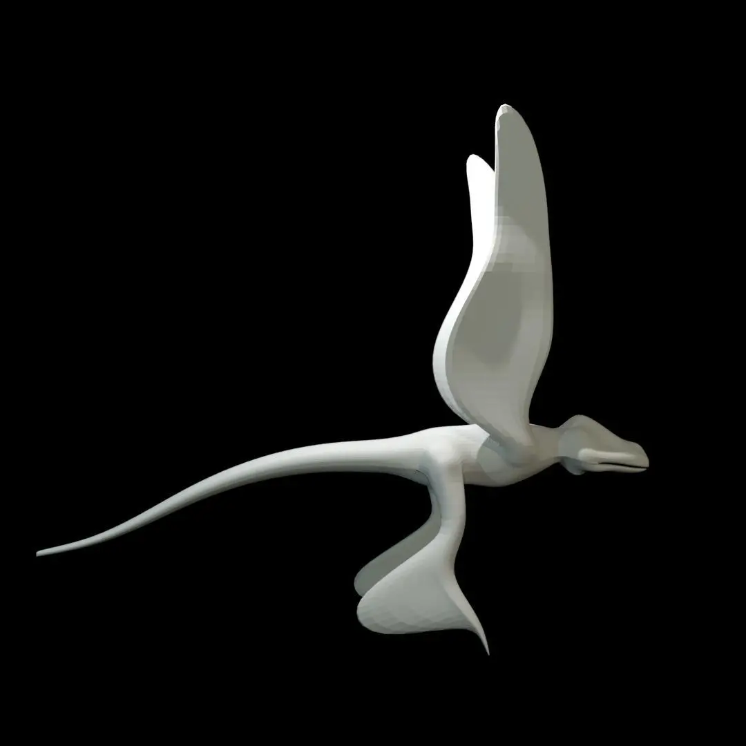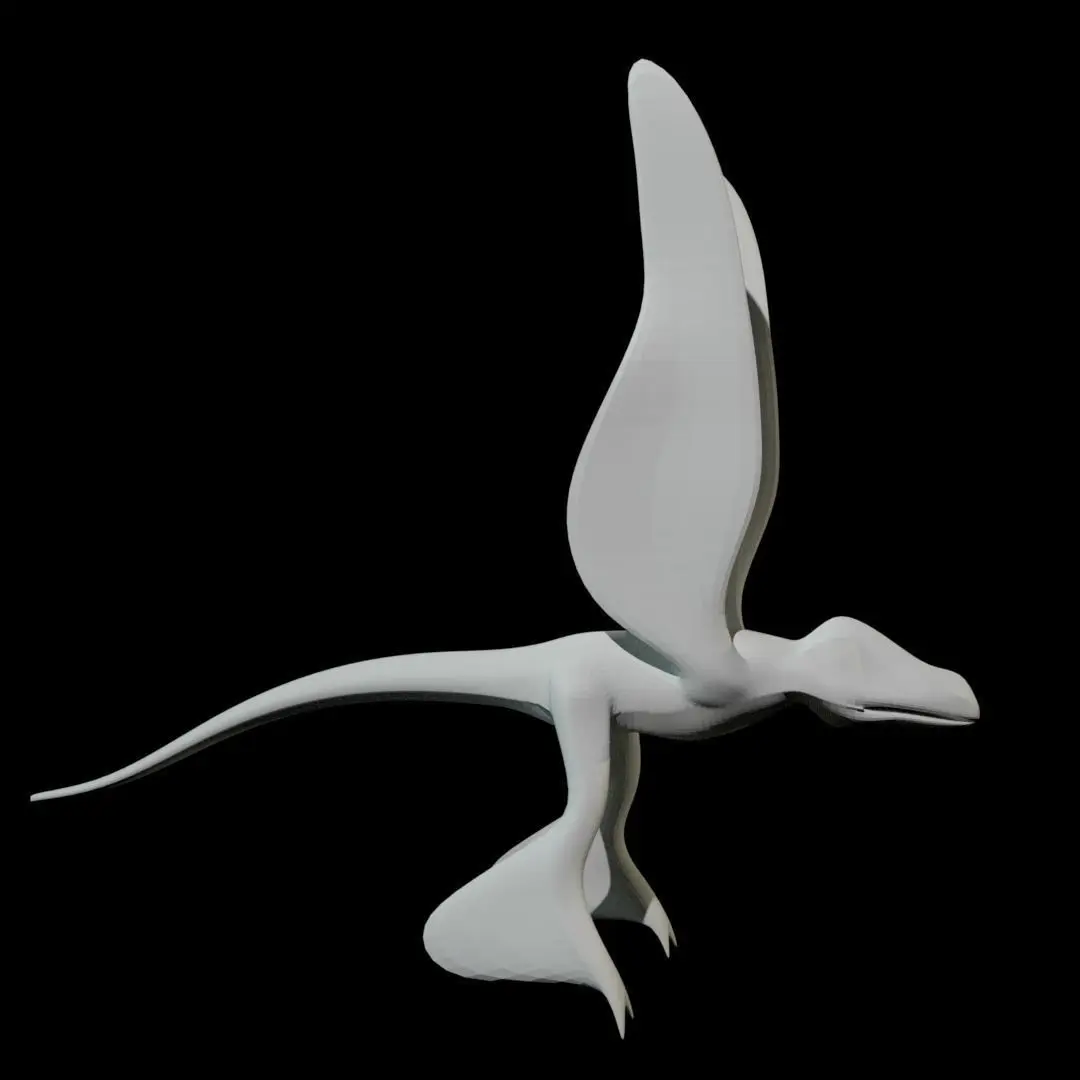 Low-poly MicroRaptor model in real world metric scale. Fully rigged with a total of 23 bones; each bone is labelled with a corresponding body part name and left/right sides.