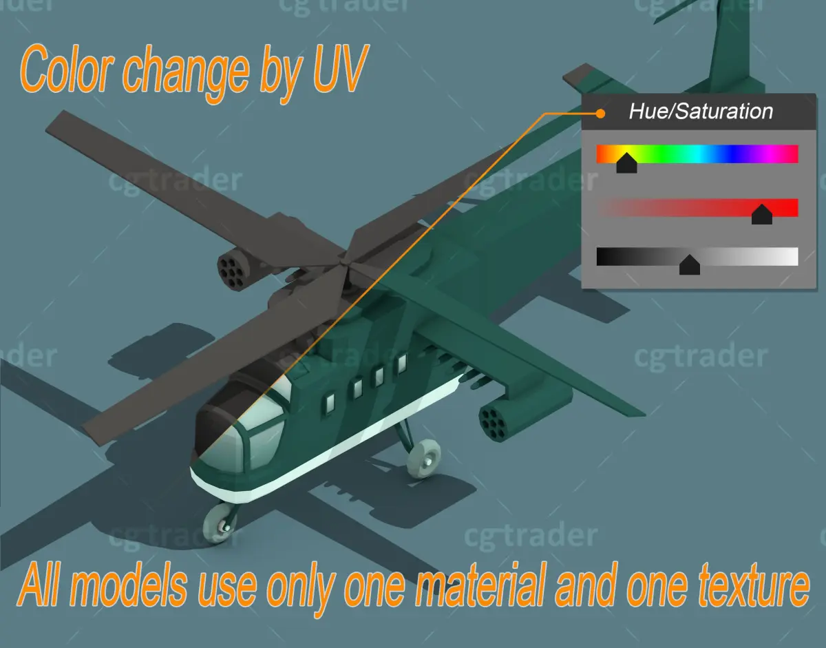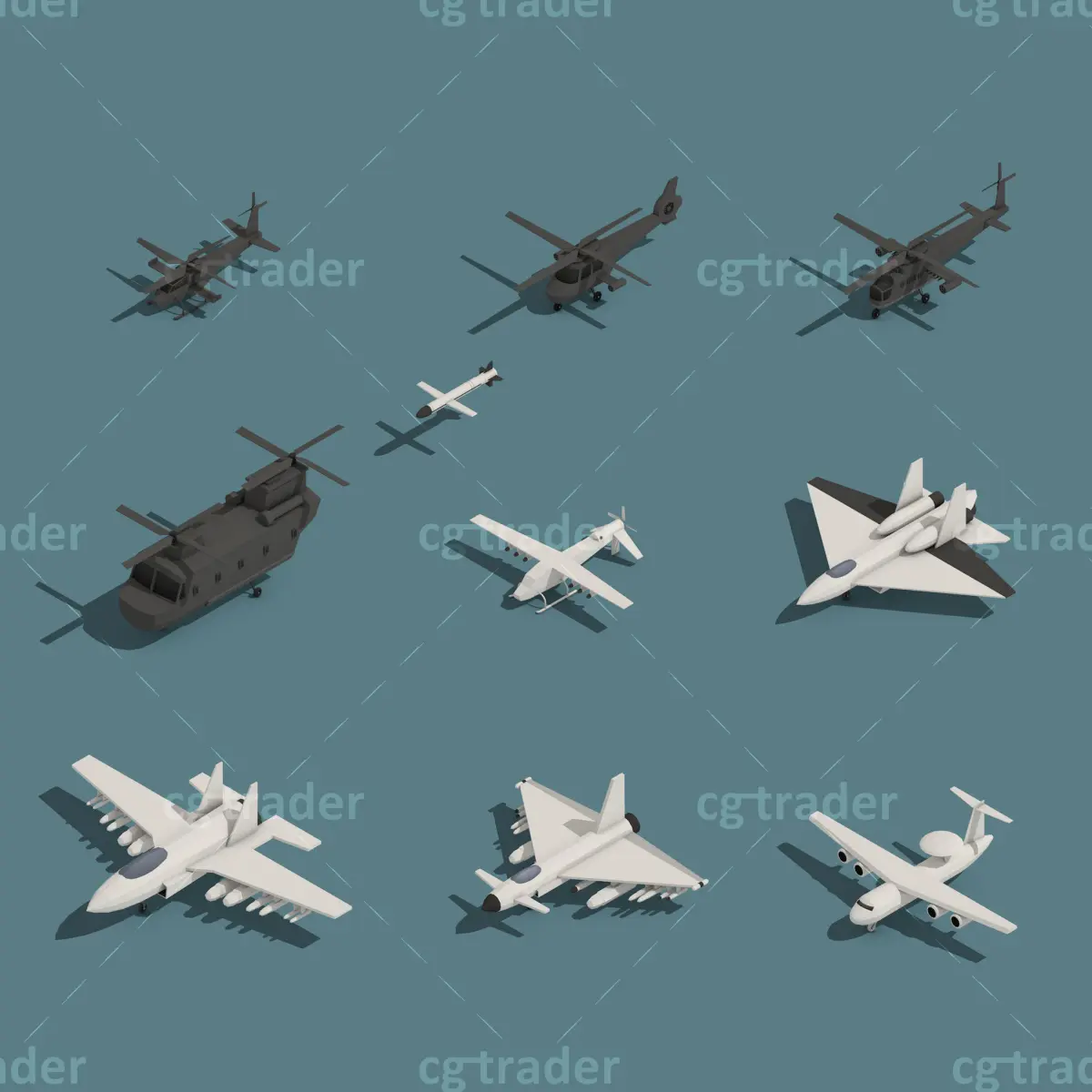 Rendering standard in Cinema 4D. Texture file size(2048*2048), You can easily adjust the color by dragging the uv. Model ready for game, render, make videos, motion graphics, inforgraphic, 3d map..e.t.c. This package contains: bomber, military drone, awacs, military helicopter, transport helicopter, fighter aircraft, interceptor, cruise missile, attack helicopter. There are many other packages here: https://www.cgtrader.com/linkdo