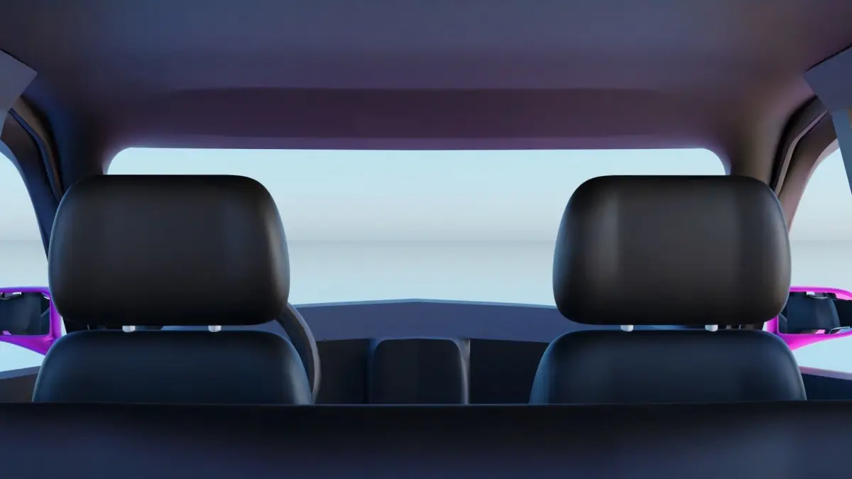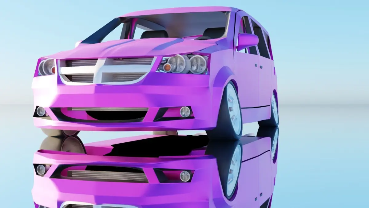 Low Poly Mini Van, with low detalied interior, has rotating wheels, doors, hood, trunk