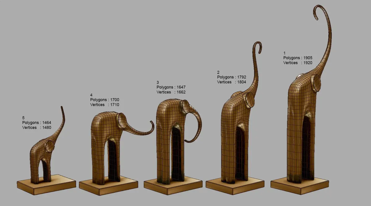 Low poly model Five elephants.Game modelA set of elephant figurines.For decoration of premises.Modern.The package contains formats:OBJDAEBaked textures 1024 and 2048 + png 2048Attention! You cannot sell or transfer to another person my models. All rights reserved by the copyright of the creator. Your purchase of any creative products intended for personal, limited, or enhanced commercial use is a license to use only. You do not own the asset.