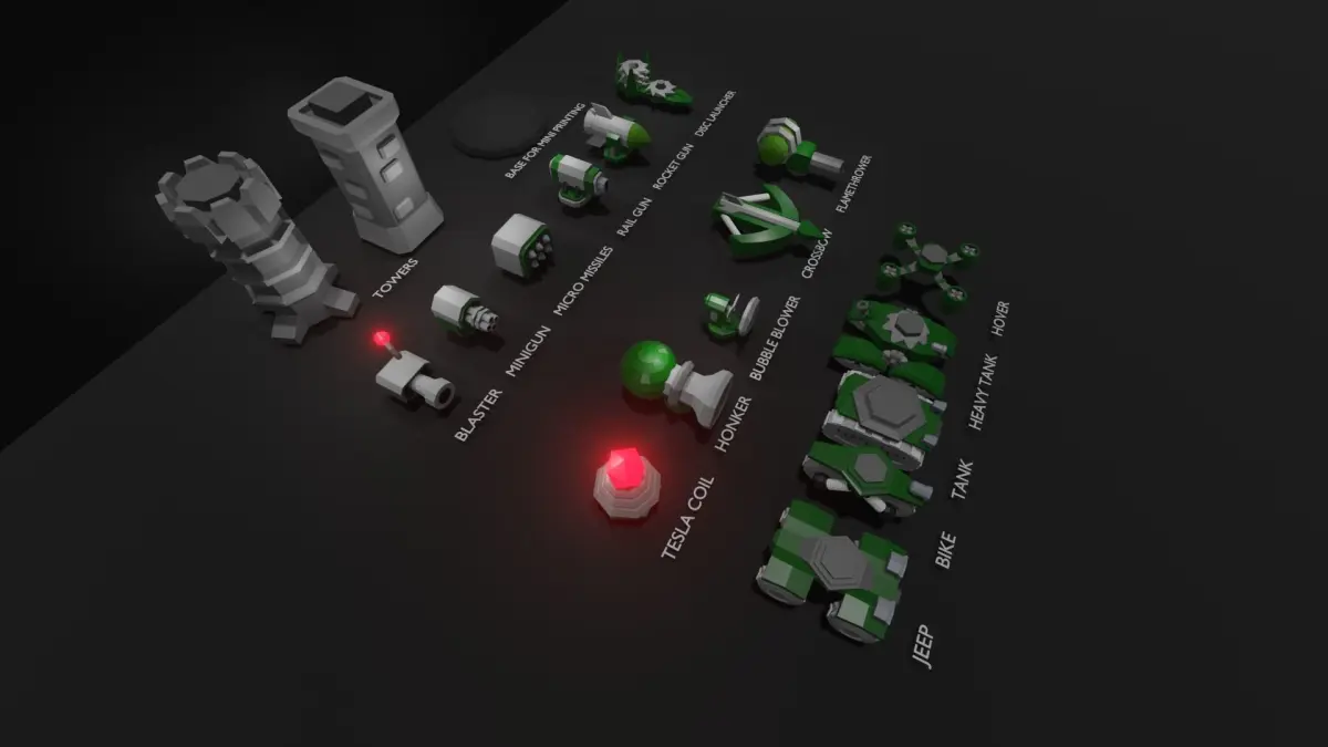 UPDATED WITH MORE MODELS AND BLEND FILE - 2 new Tanks Chassis & 7 new Guns & Towers for TD games with guns