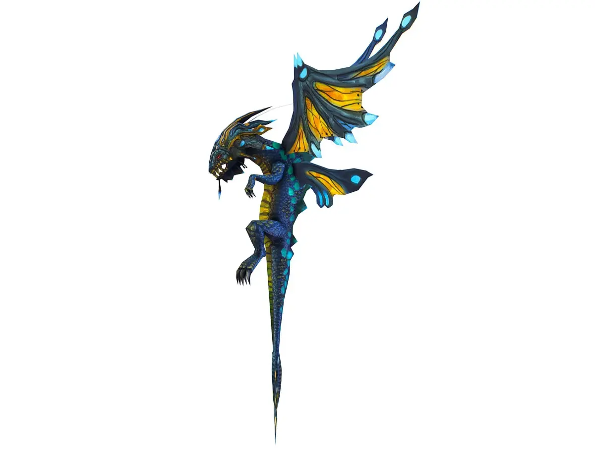 Low Poly Monster Blue Young Winged Dragon Low-poly 3D model