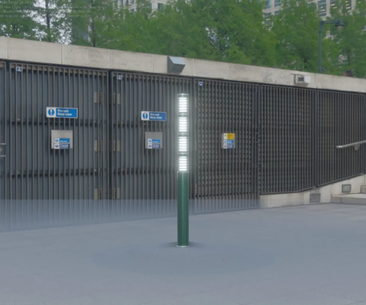 The moss green textured light column 15 out of the street light set 9.