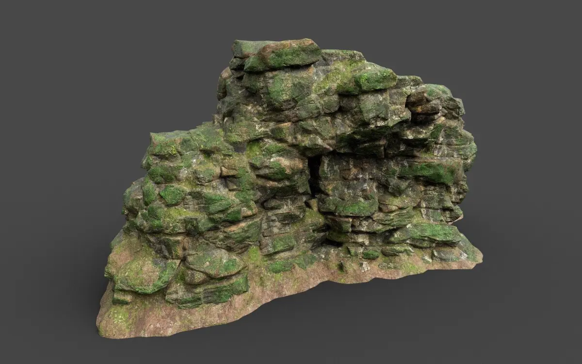 cave cliff exterior beach landscape mountain sharp rock rocks layered stone sedimentary mossy sandstone moss formation jungle forest boulder
