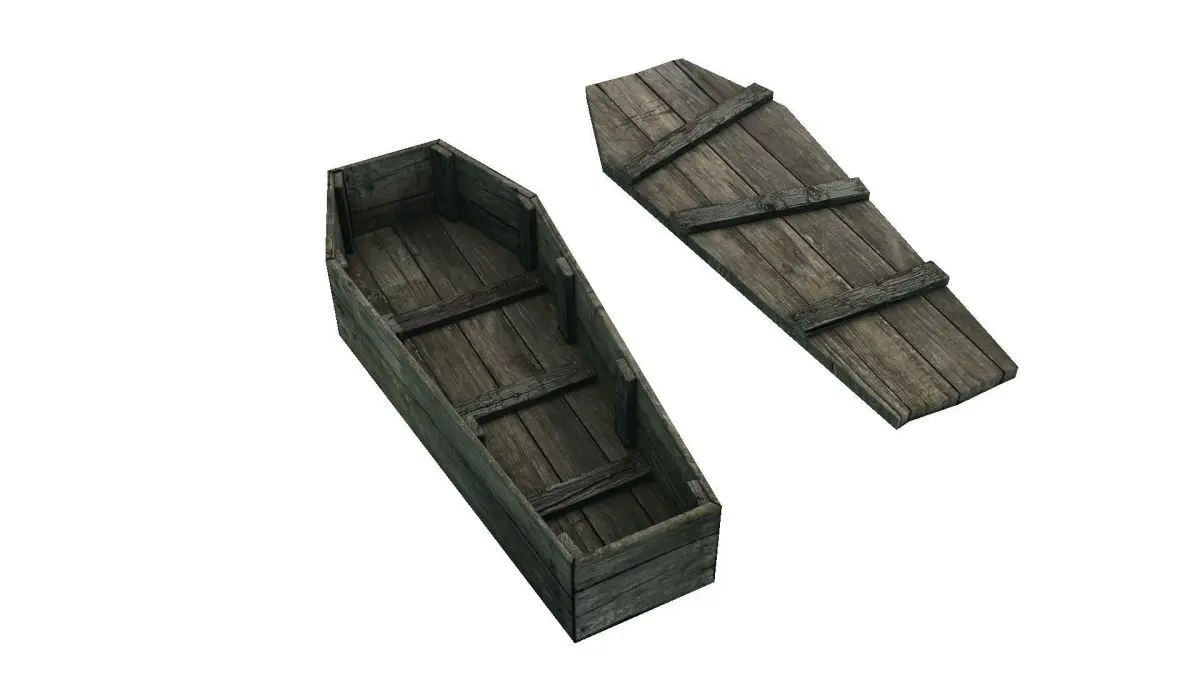 Low poly rustic, old timey coffin made in Blender for the Cycles renderer with BSDF materials, ideal for games. Comes with Diffuse, Metal, Roughness, Emission, and Normal maps. Could be used for medieval, old western settings or even in modern settings to symbolize a precarious burial or a horror scene, since this type of coffin design is so versatile.