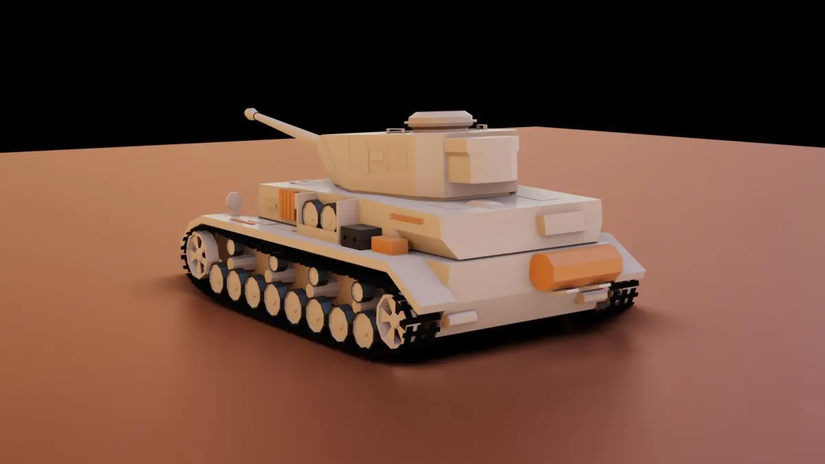 A German World War 2 Low Poly Panzer IV model tank. To be even more precise its the December 1943 Bobruysk version of the Panzer IV tank. More than 7000 Panzer IVs were built in the Second World War and this tank was one of the cheapest tanks in Germany. And was used until 1988 with modifications.