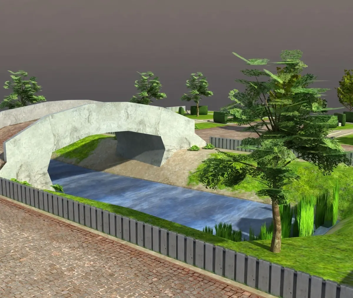 HomeCatalogLow poly Park garden with grass and trees Low-poly 3D model