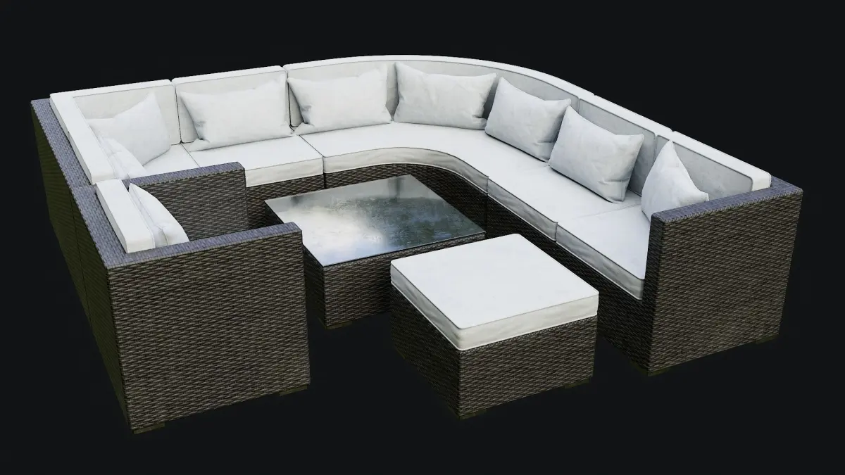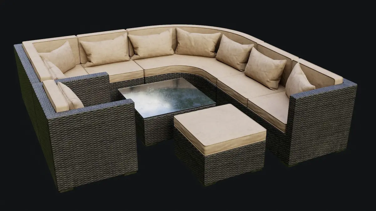 Overview: This is a Low-poly, game ready Rattan Sofa Set with 8 chairs, 1 seat, 1 table, with 6 cushion colours (White, Grey, Blue, Green, Red, Tan)