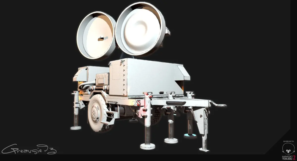 This is a Low-poly, game ready Sentinel Radar with a High Power Illuminator Radar in three camo types (Desert, Urban, and Woodland).