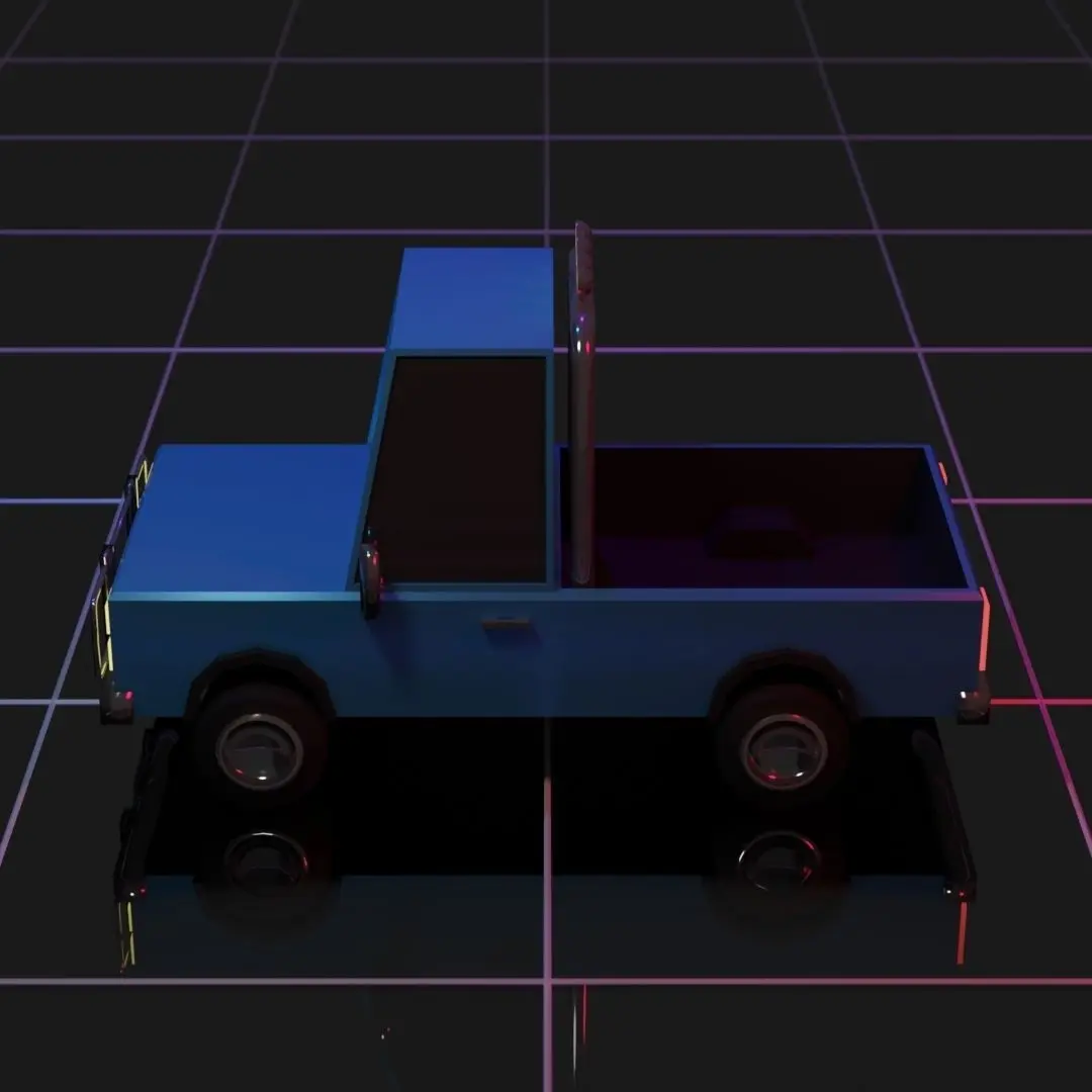 Cartoon Styled Low Poly Pickup Truck Modeled Entirely With Quads. This Model Was Created To Look Like An 80's-90's American Pickup Truck. The Look Is Completed With A Brush Bar On The Front, A Lift Kit And Offroad Lights On Top. This Model Is Ready To Be Used For Rendering Images, Creating Animations, Using For Games, Etc. This Model Is Not Rigged. This Model Was Colorized Using Materials. There Is Not A Download For Textures.