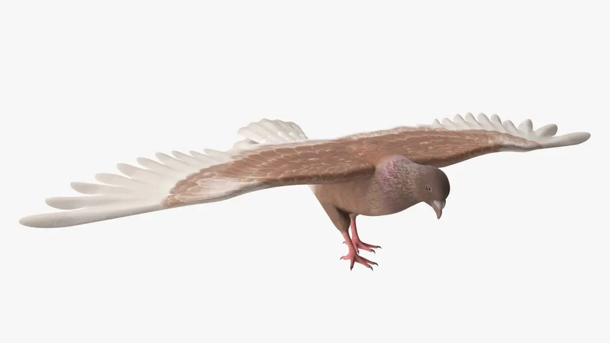 Low Poly Pigeon Spread Wings Brown Rigged for Maya is a three-dimensional model of rock dove (Columba livia), also known as the rock pigeon or common pigeon.