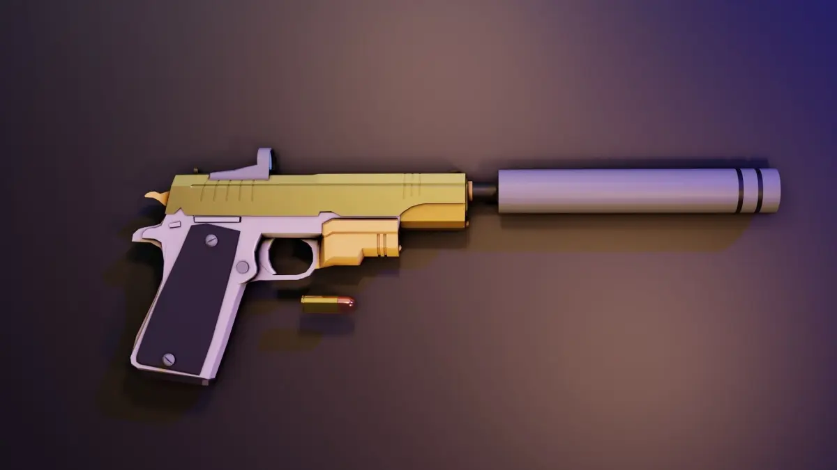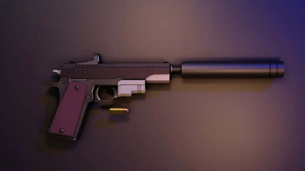 This pack includes a low poly stylized pistol with high detail based on the M1911 pistol and its attachments