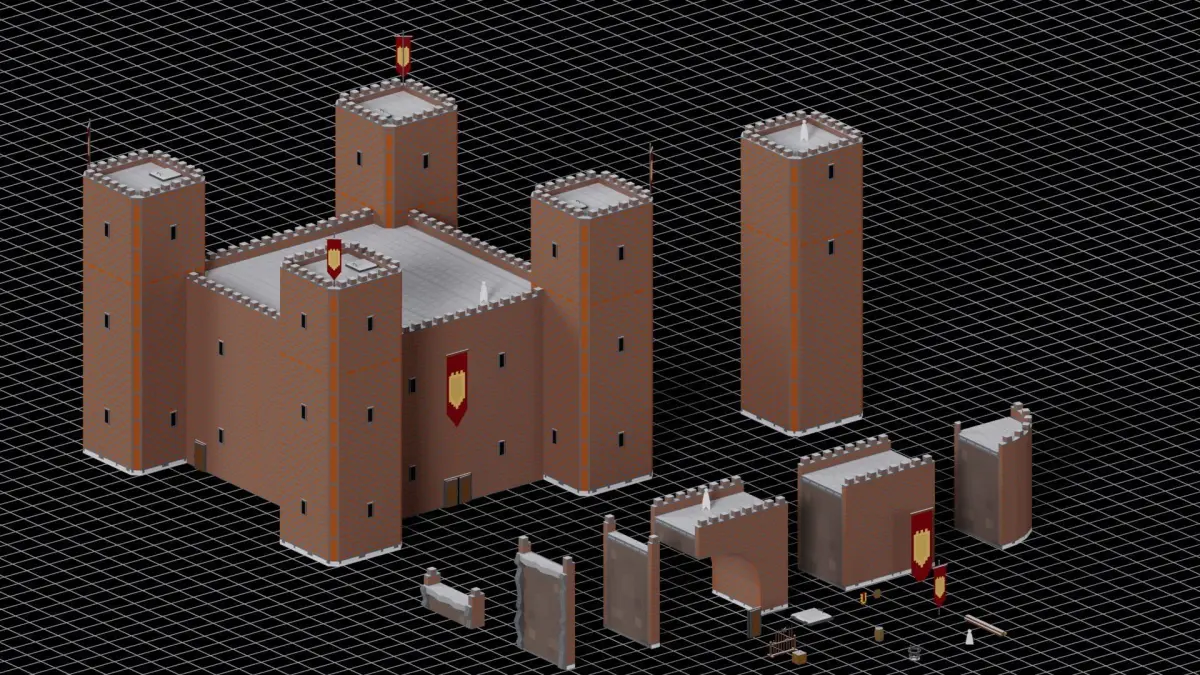 Low Poly Pixel Castle onstructor Free low-poly 3D model