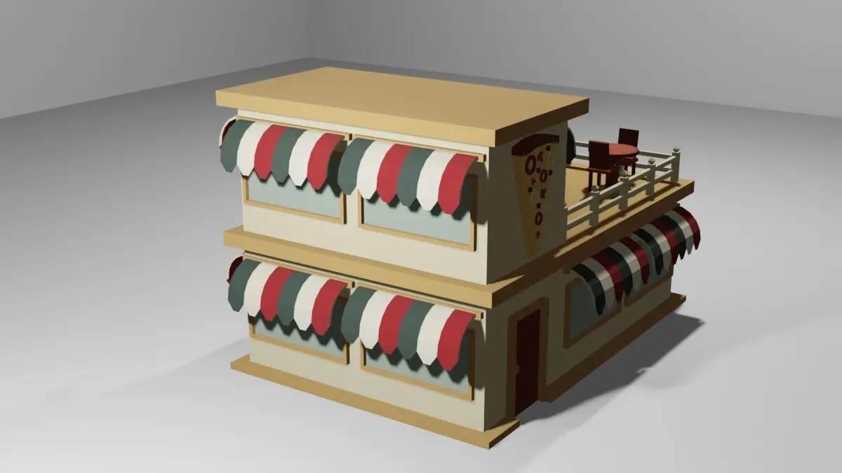 HomeCatalogLow Poly Pizza Shop with 3 different color options Low-poly 3D model