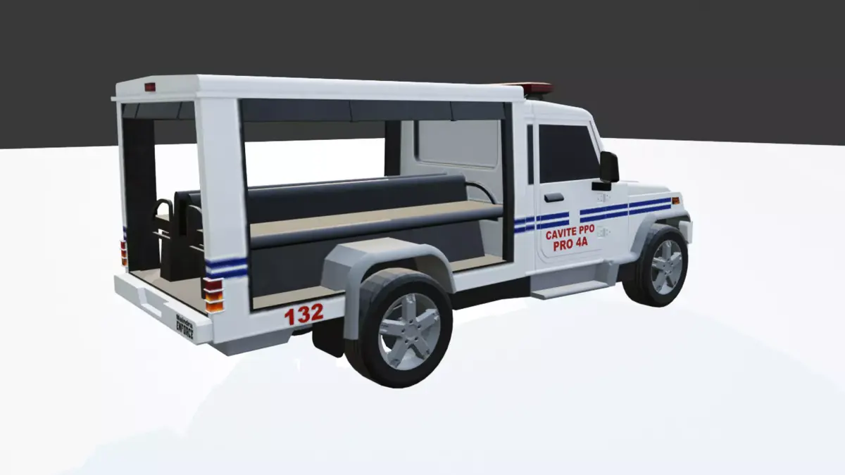 This is a low poly 3D model of a police patrol car designed for real-time applications and game development. The vehicle features a clean and optimized mesh suitable for urban environments, traffic systems, and open-world scenes.