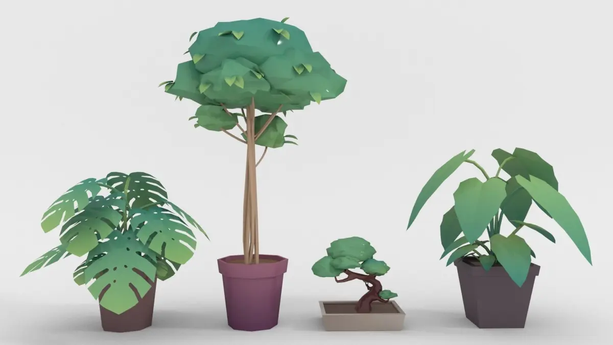 Low-poly popular indoor plant collection tree collection, modeled in Blender. The models are simple and minimalistic with simple color material and a gradient material, ready to be used in production in Virtual Reality (VR), Augmented Reality (AR), games, and other real-time apps. Models are a part of the collection of outdoor and indoor low poly Stylized plants. You can easily change the material colors and reflectivity inside the native scene or imported fbx model to the software of choice. All collections are made in the same style.