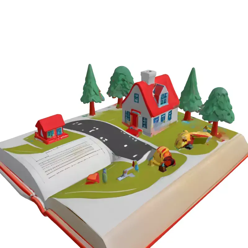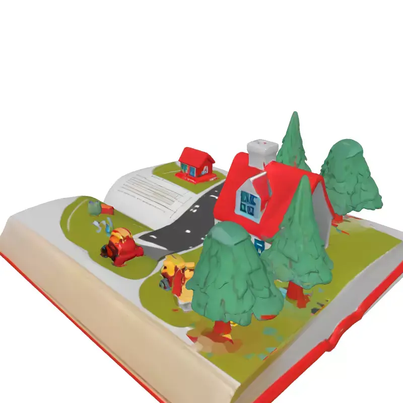 Discover this charming and meticulously crafted 3D model depicting a vibrant, low-poly village scene gracefully emerging from the pages of an open storybook. This unique asset is designed to evoke the whimsical aesthetic of a pop-up diorama, perfect for adding a touch of enchantment to your projects. The scene features a cozy main house, a smaller dwelling, several stylized evergreen trees, a winding road, miniature vehicles, and tiny human figures, all set against lush green landscapes. This model is exceptionally versatile, ideal for use in various applications such as casual game development, mobile games, augmented reality (AR) and virtual reality (VR) experiences, educational content, and digital art. Its optimized low-polygon count ensures excellent performance in real-time applications and game engines, while maintaining visual appeal for static renderings and conceptual visualizations. The clean topology and efficient UV unwrapping provide a solid foundation for further customization and texturing. While currently presented with vibrant, flat-shaded materials, it is fully prepared for PBR (Physically Based Rendering) workflows should you choose to apply more complex textures. Supported file formats include GLB, OBJ, FBX, USD, DAE, PLY, and STL, making it easily integrated into most 3D software and game development pipelines. The inclusion of STL also makes it suitable for 3D printing small-scale physical dioramas. Elevate your creative endeavors with this delightful and highly functional 3D pop-up book village asset.