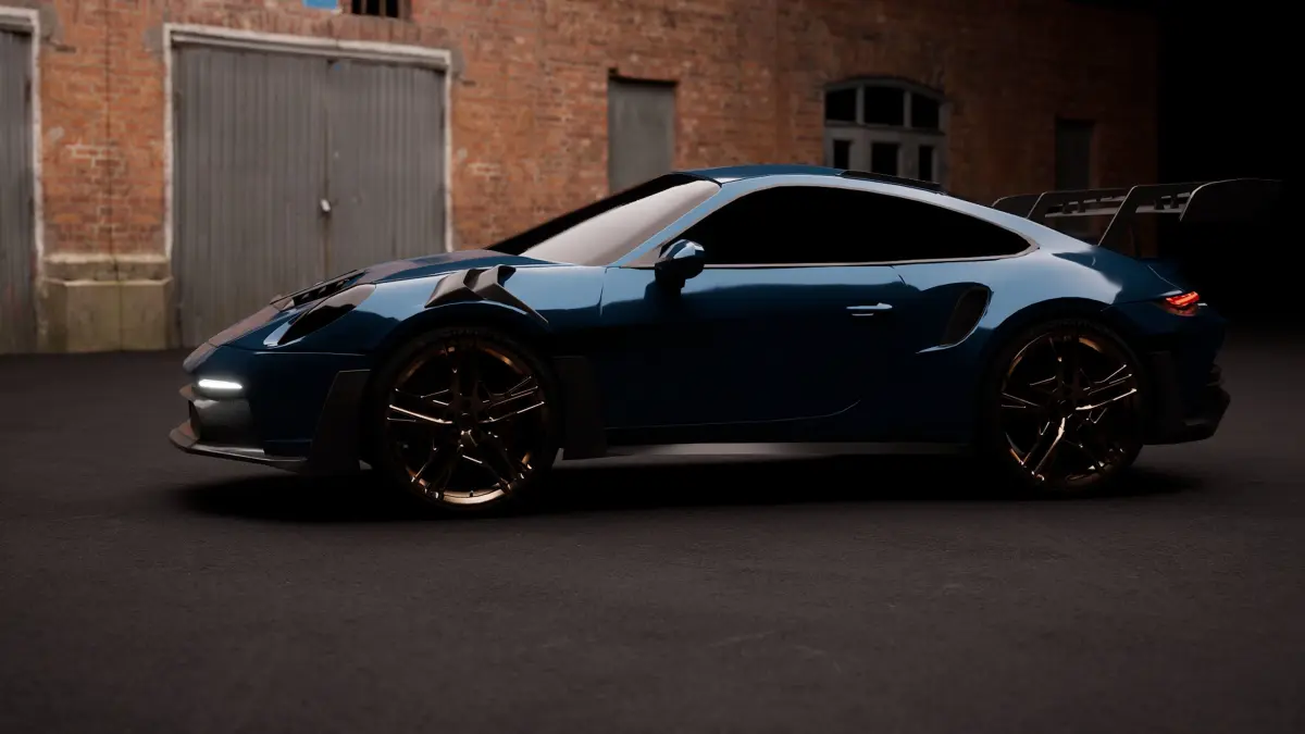 Low-poly 3D model of the Porsche 911 ( 992 )GT3 RS 2022 without logo.There are 2 separate models in the file .The first model is an exterior with a low-detailed interior , 47000 polygonsThree UV setsBodyWheelInteriorMetallic-Roughness textures - 4096/4096The second model is the interior of the front of the car , 24000 polygons.Three UV setsBasePanelGuagesMetallic Roughness textures - 4096/4096