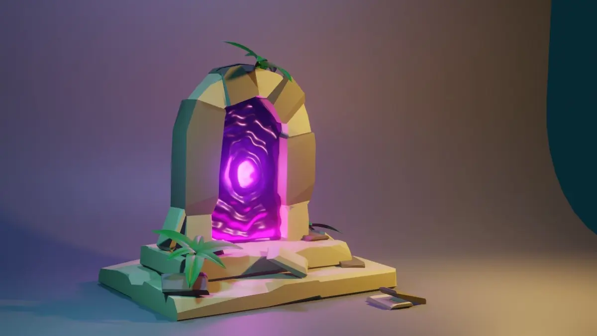 Low poly portal stone door with light in middle Low-poly 3D model