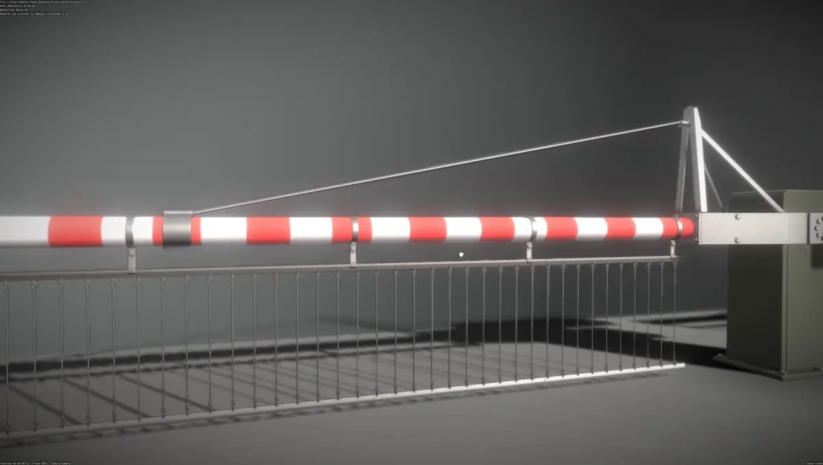 The pbr-textured low-poly version of the railroad barrier with a range of 4 meters and protective grid.