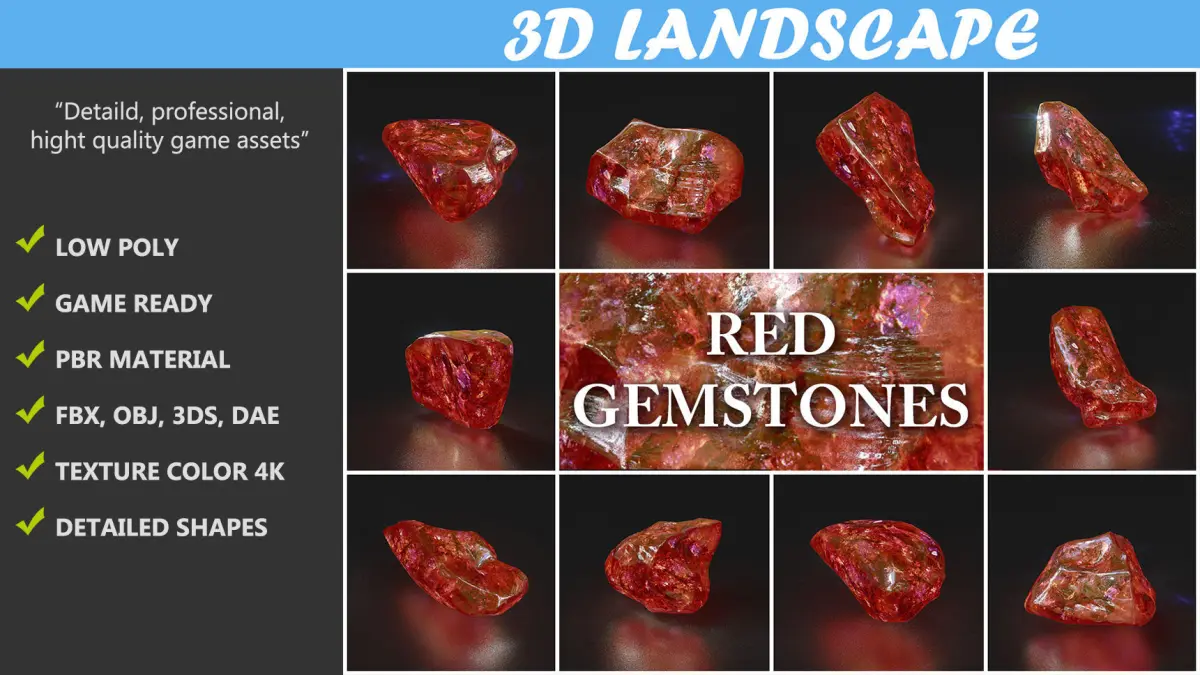 This is the models with Pbr material. Basically, Pbr materials do not support refractive properties (a characteristic of gems). To solve this problem, I used the Roughness and Emissive channels to simulate the object, to create a similar image of the refraction. Hope you understand to use the model most effectively