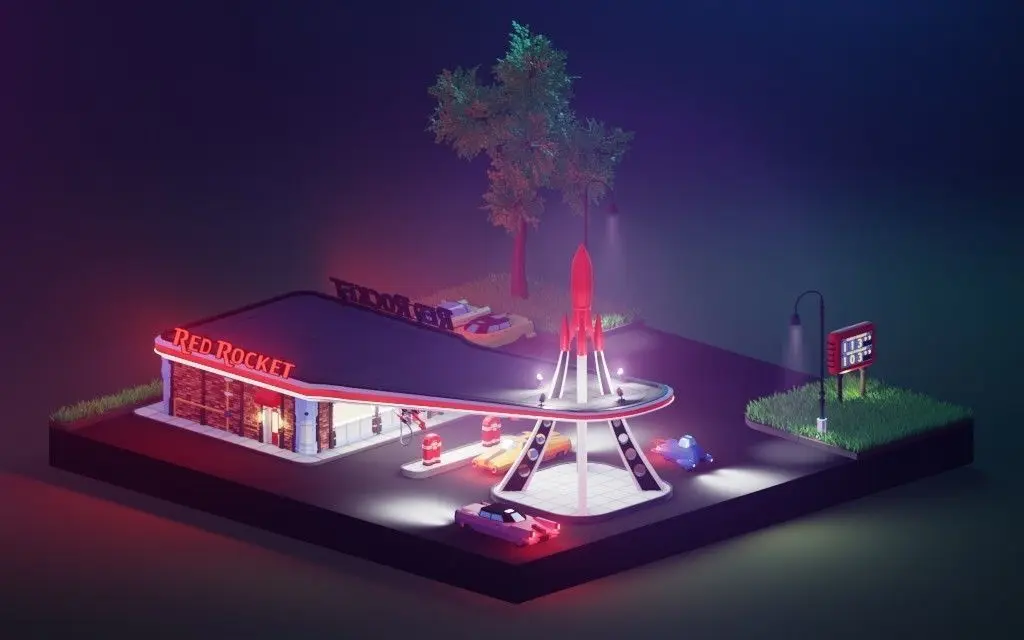 Low poly Red Rocket Gas Station diorama. The diorama is inspired by the Fallout game series.