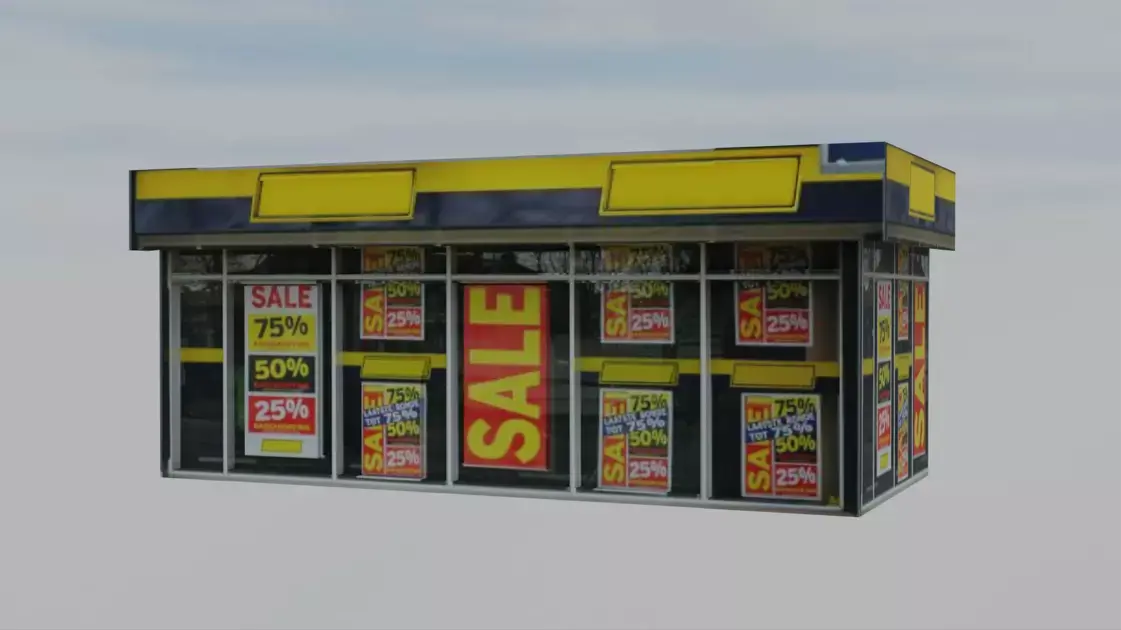 A clean and lightweight low-poly retail storefront building perfect for urban game environments, shopping districts, simulation scenes, and real-time applications. With bright signage and large front glass panels, this model fits seamlessly into modern city setups and commercial areas.