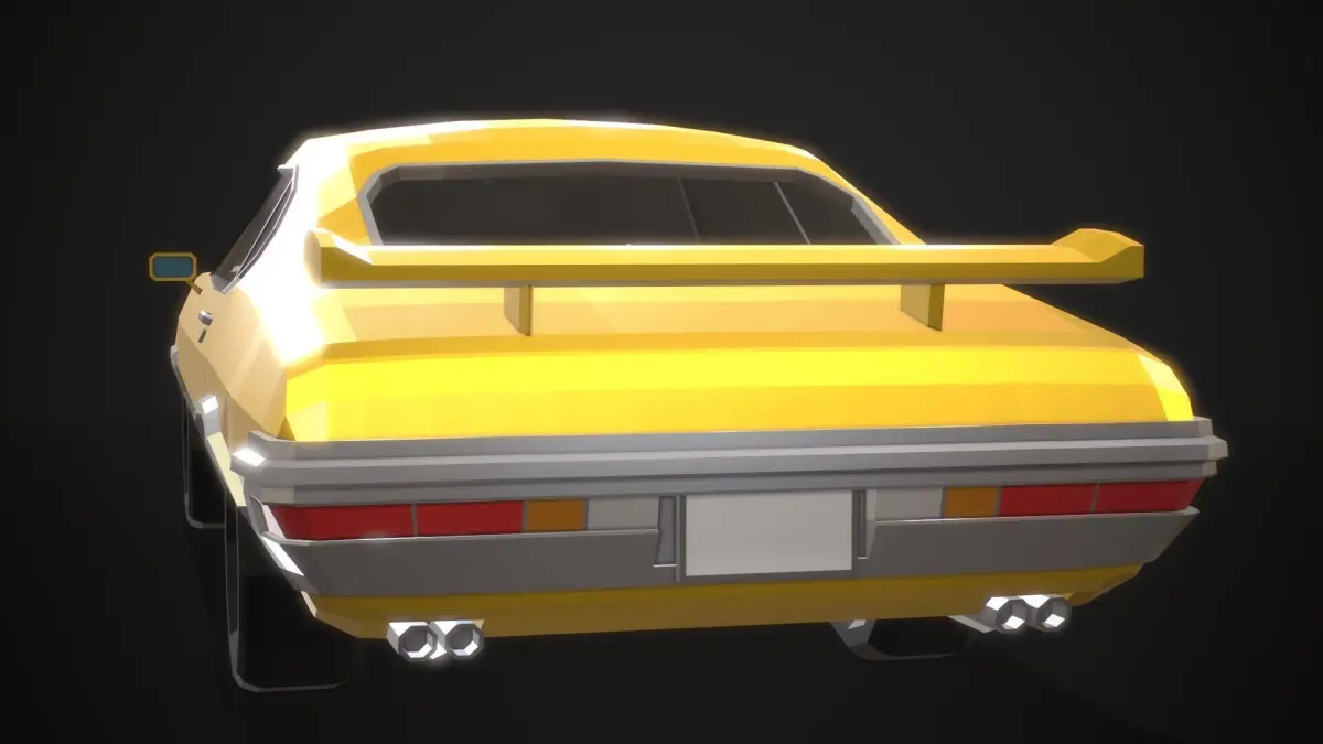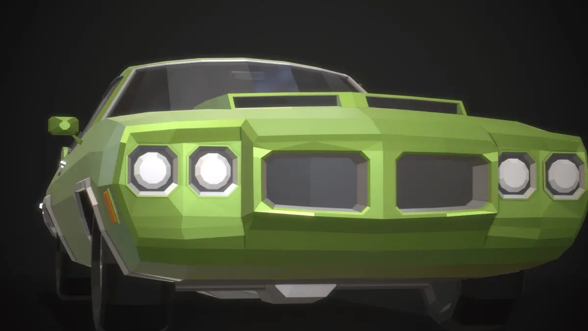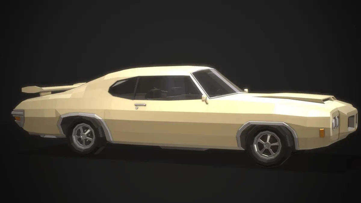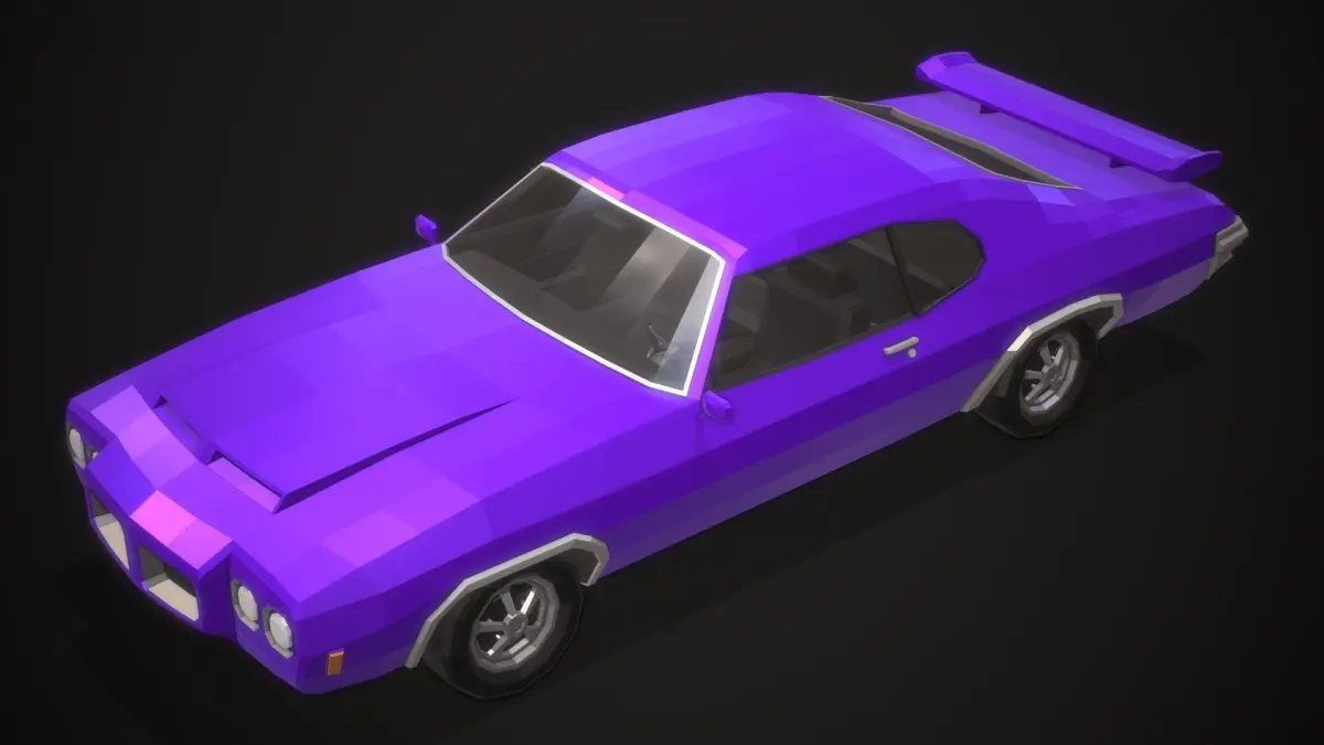 Stylized low-poly model inspired by the design of American muscle cars of the 70s, with real-world proportions, and fully modeled interiors.