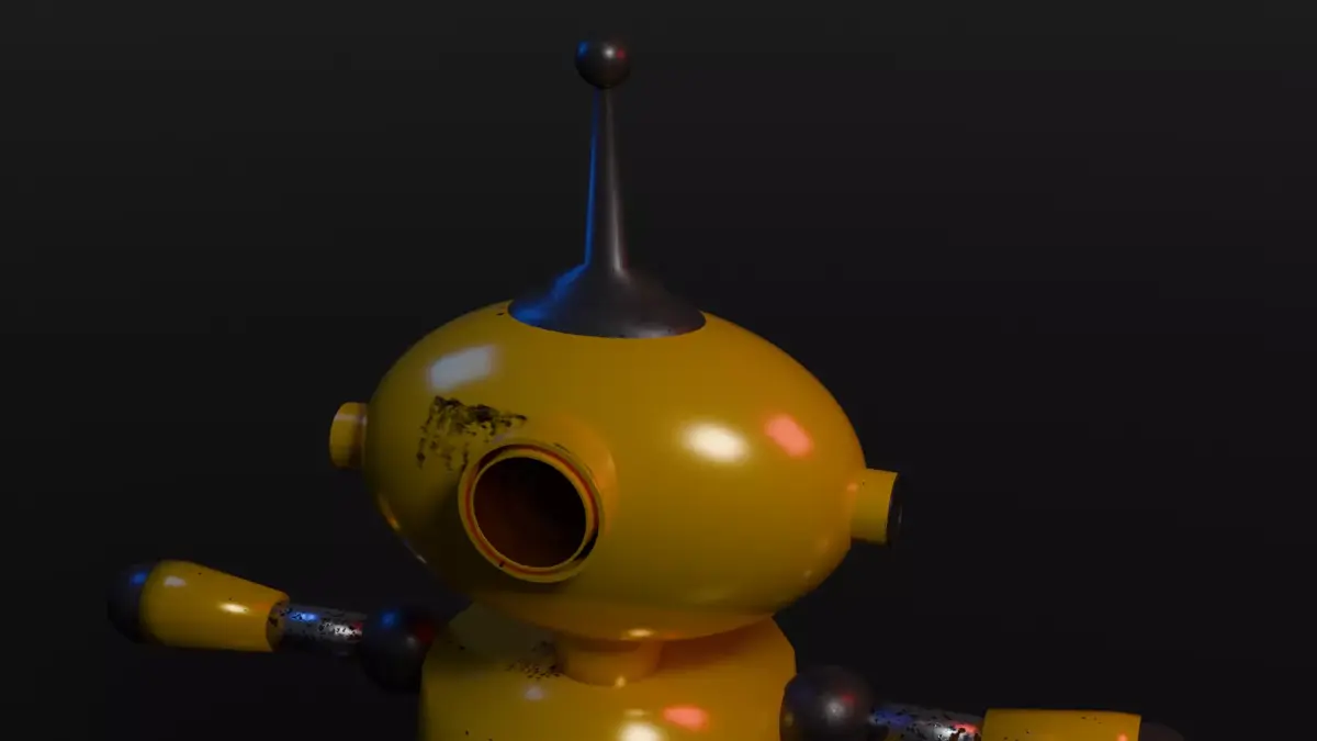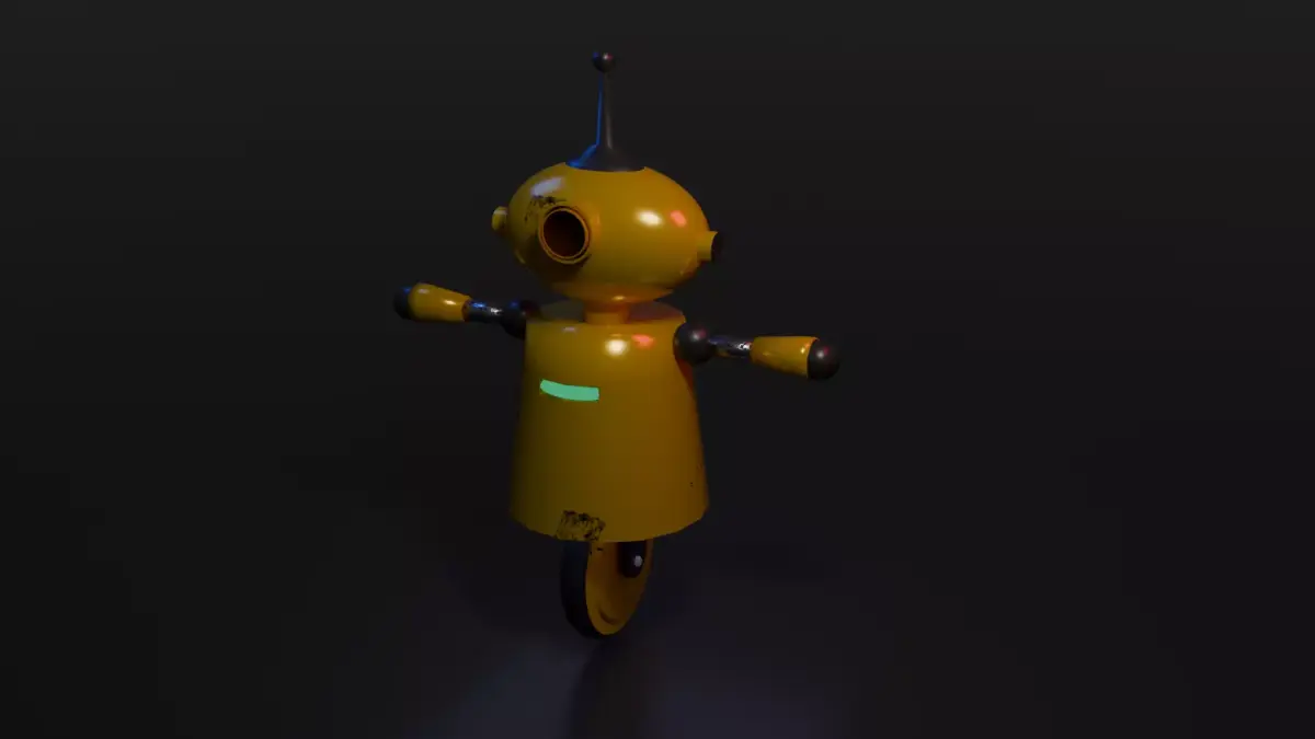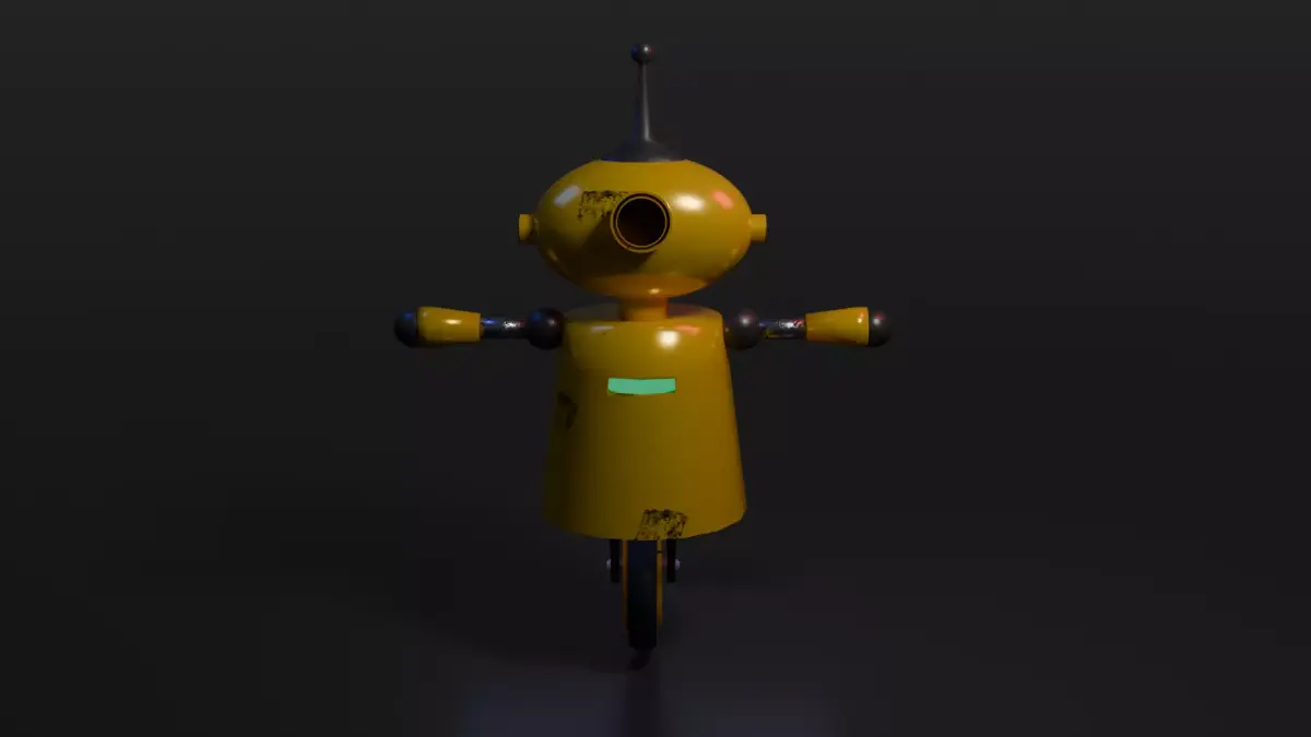 A stylized low-poly robot character with a retro sci-fi design.Features simple geometric shapes, minimal detailing, and subtle surface wear for added character. Ideal for use in games, animations, prototypes, AR/VR projects, or as a background prop.
