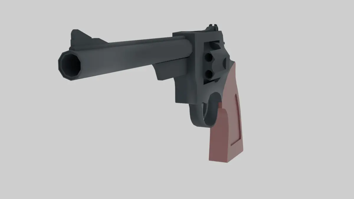 A clean and efficient low-poly 3D model of a revolver. Modeled in Blender.