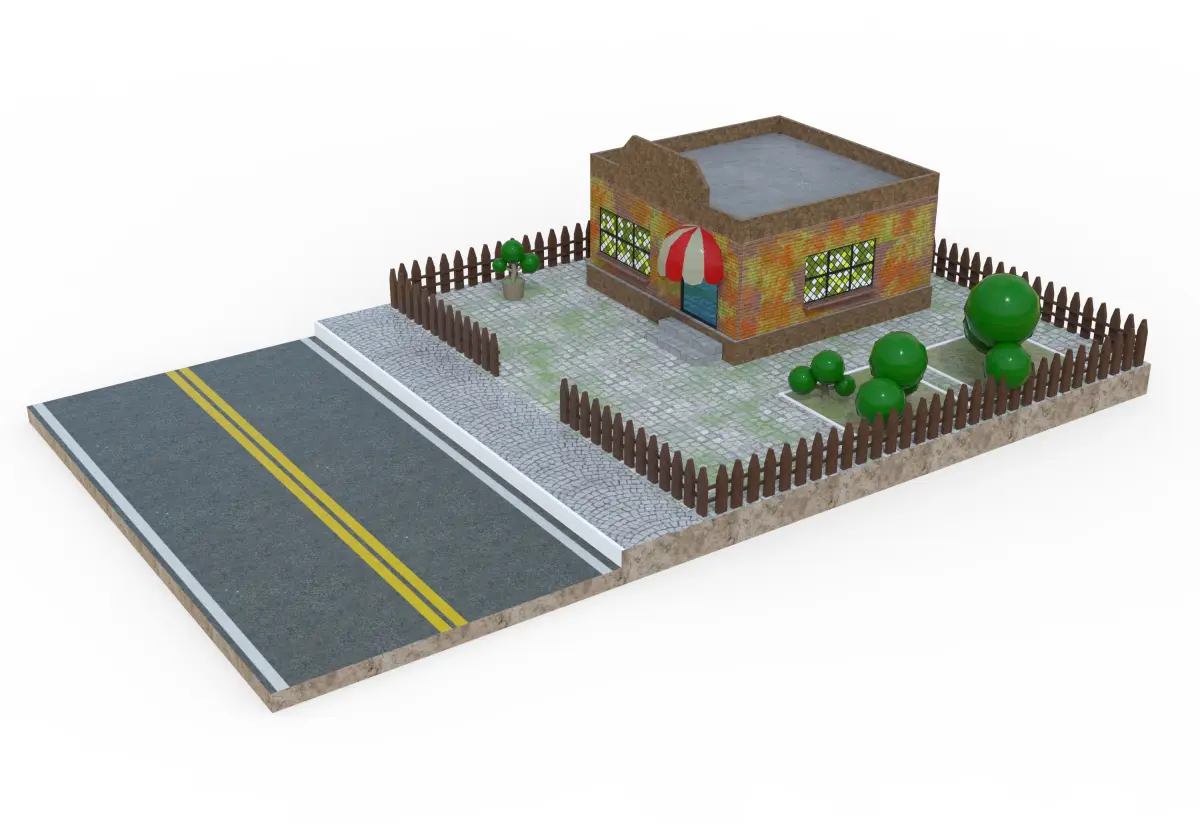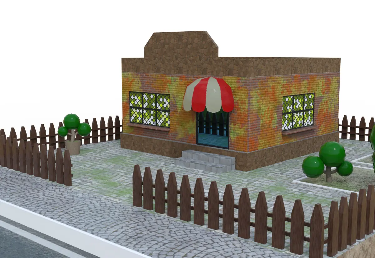 Low poly Roadside Coffee restaurant 3D Model for any 3d game or low poly work.