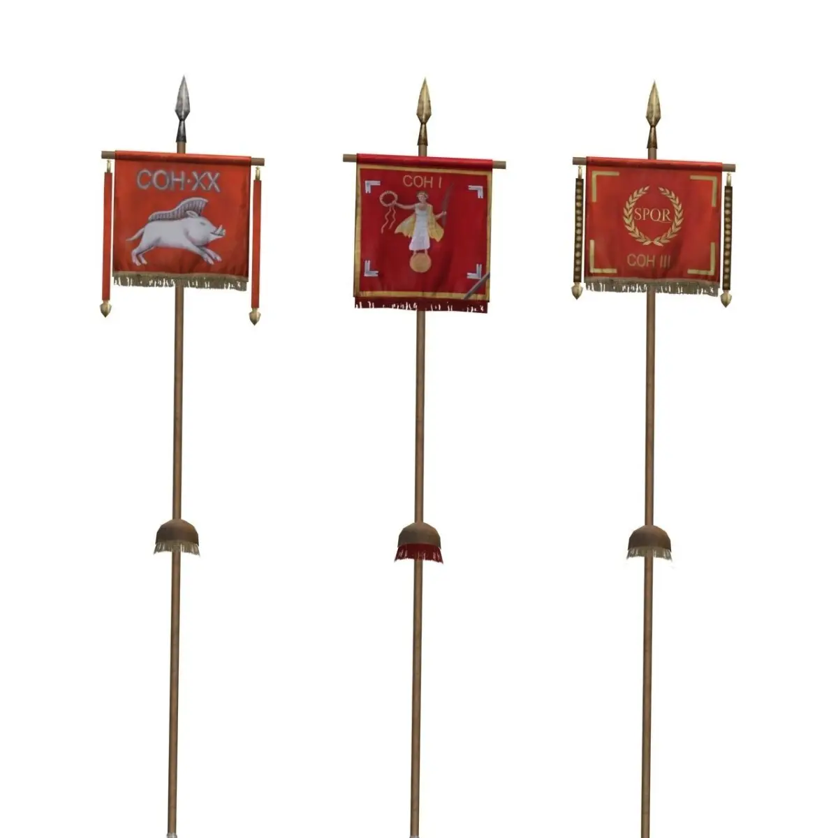 These are low poly models of ancient Roman standards ready for game usage. They were used by the Roman legions of the Marian Reform.