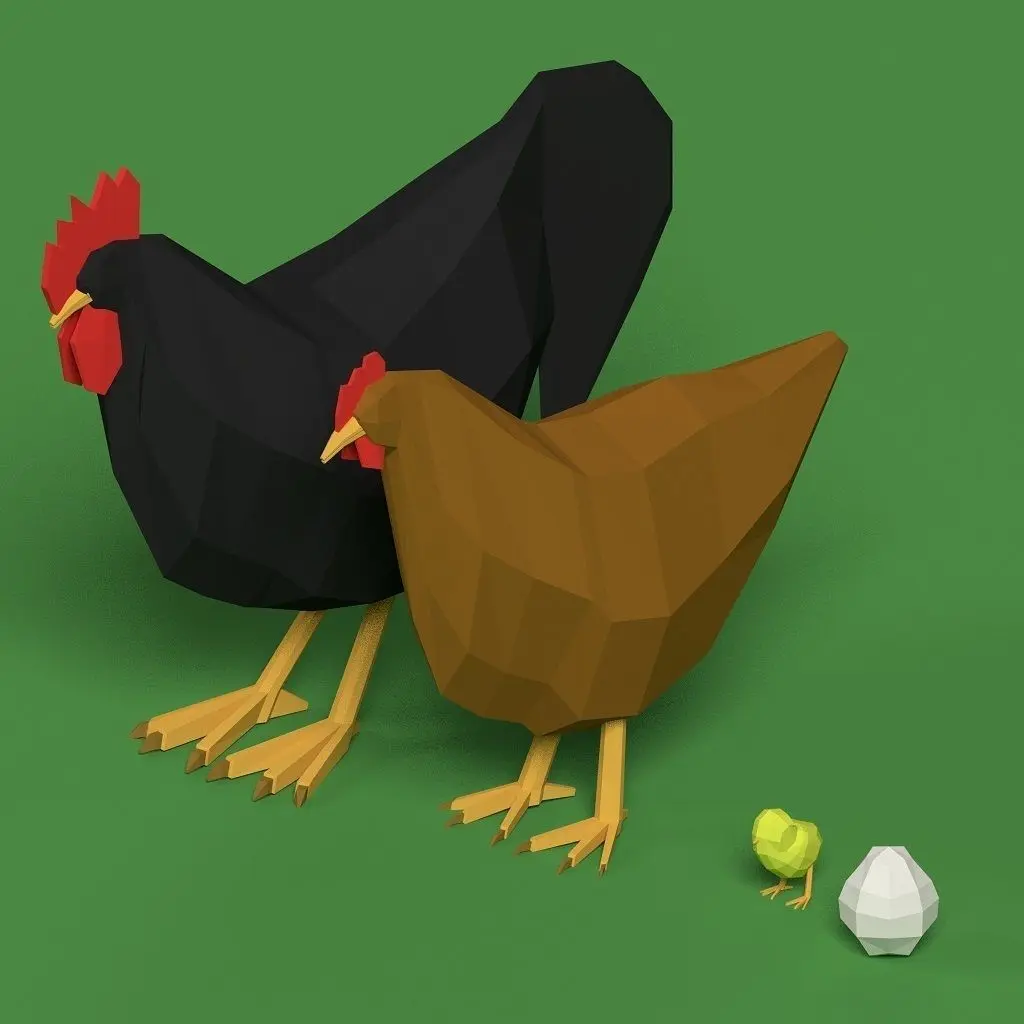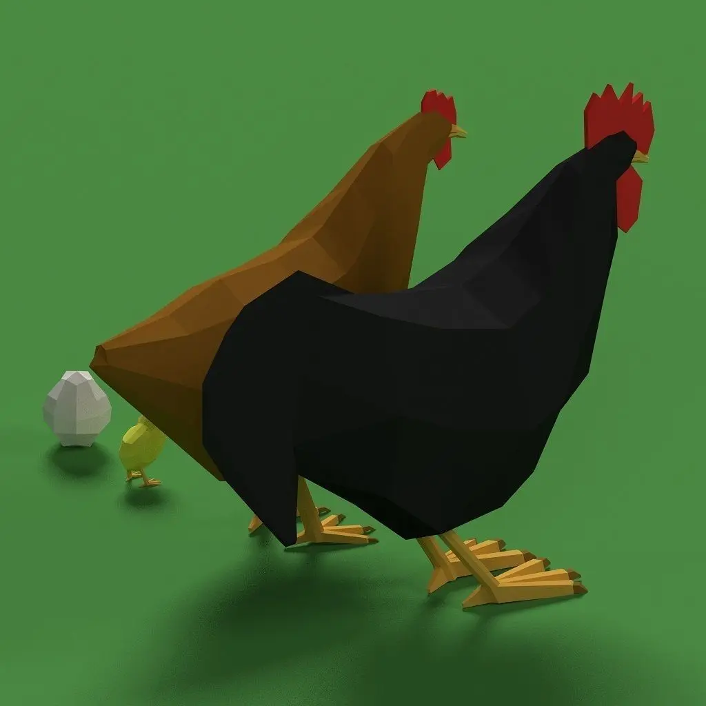 HomeCatalogLow Poly Rooster Hen Chicken Egg Set Low-poly 3D model