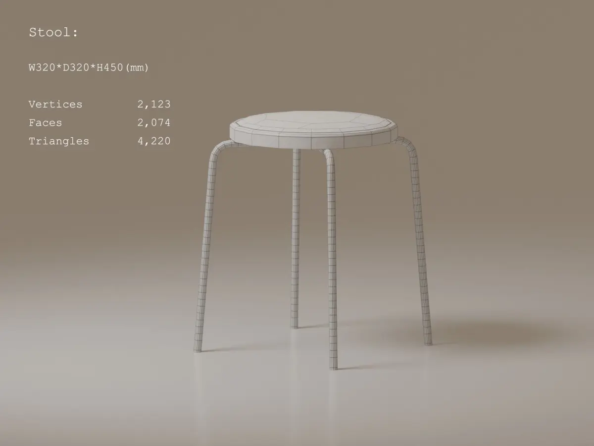 Low-Poly model of stool. Originally created with Blender. Tested in UE5. Previews are rendered with Cycles.