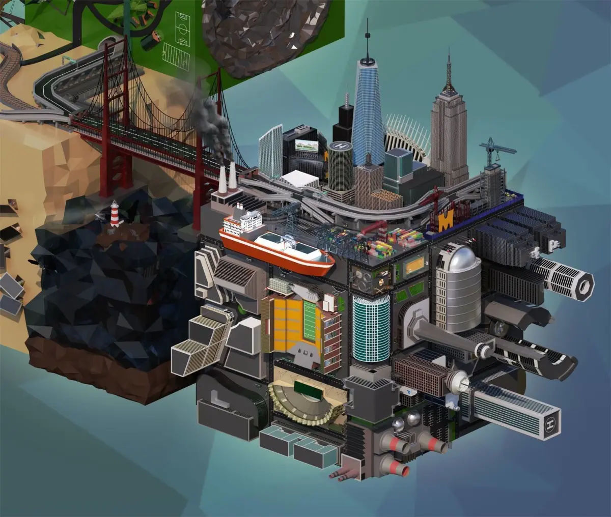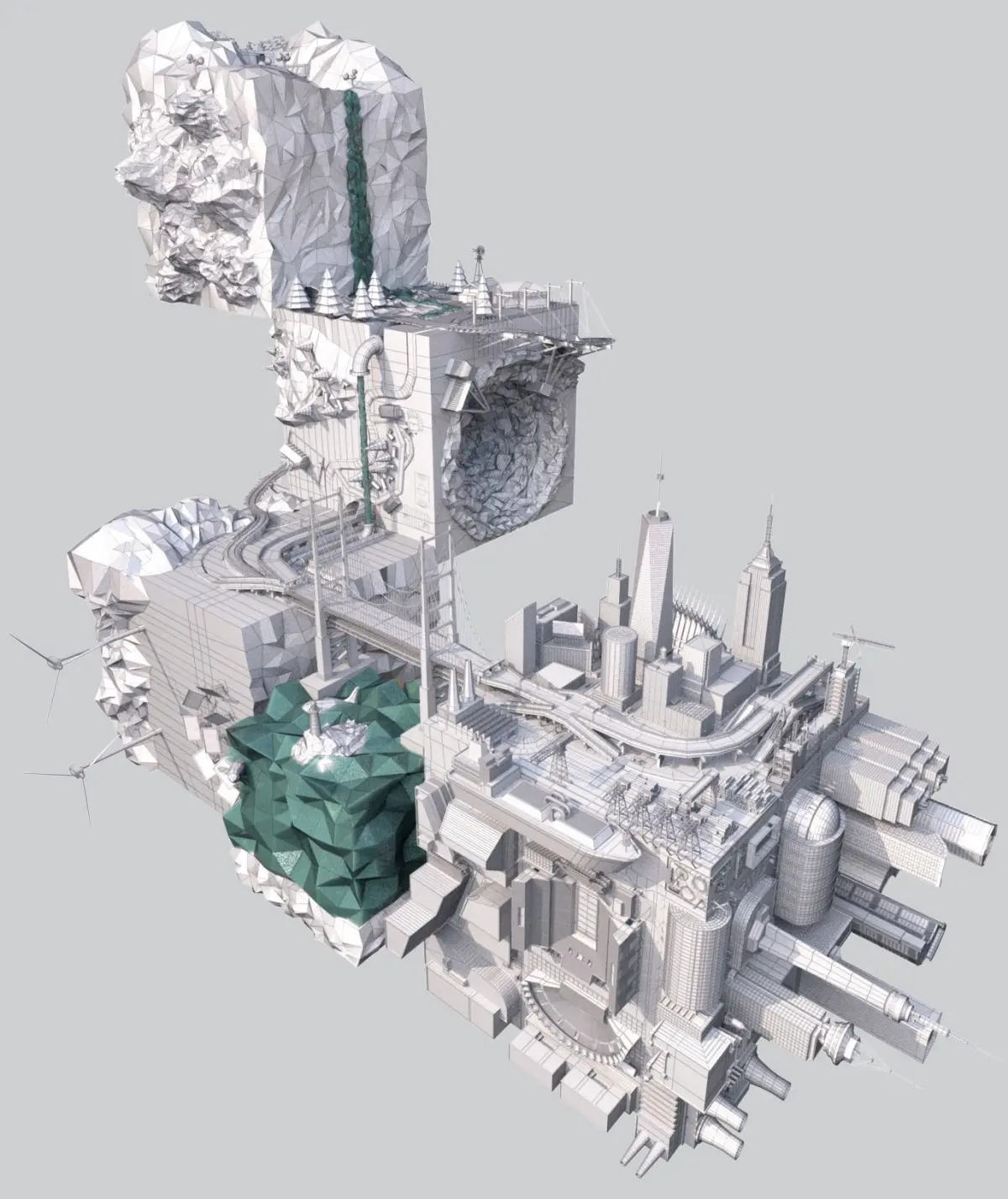 This is a large scene with a lot of individual assets and scenes. There are 3 city scenes (each size), 2 desert scene, 3 countryside scenes and 2 mountain scenes. Within those scenes there are many more assets that can be pulled below are the assets that this can be bought for.Cityscapes-Dock-Boat-Closed roof stadium (based on Toronto's Baseball stadium)-Open stadium-TV tower (Toronto)-Freedom Tower (NYC) -Empire State Building-Theme Park-Rollercoaster and other carnival rides-Basketball -PowerPlant-Amphtheatre -City Offices -Warehouse-Building site