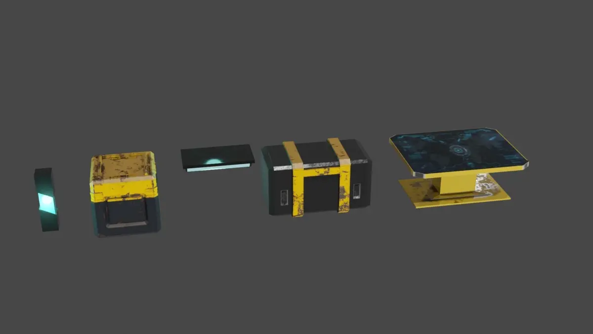 In Pack: 2 boxes, 2 lamps, table, floor, roof and wall.